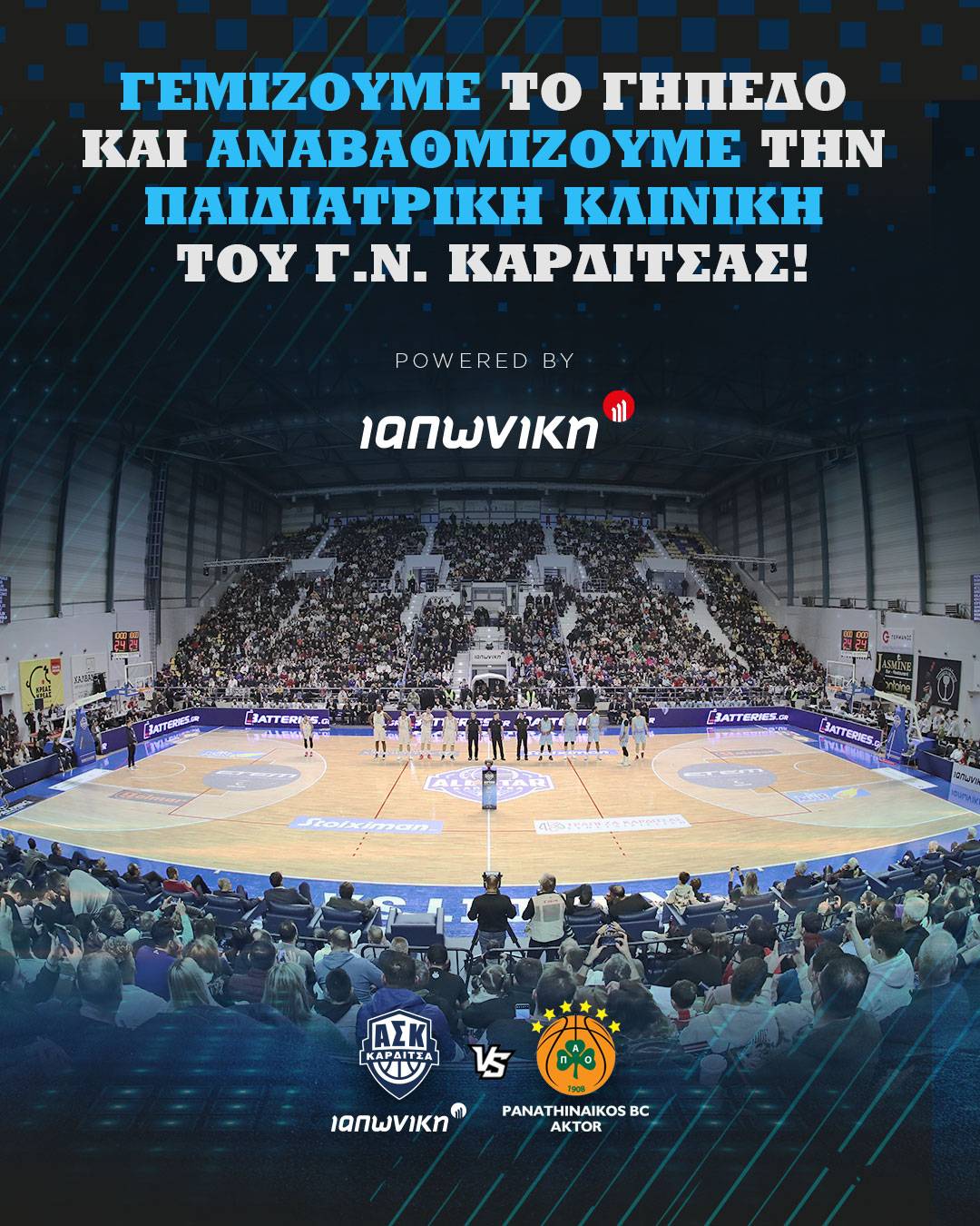 Η ΙΑΠΩΝΙΚΗ Α.Ε. σε συνεργασία με τον Α.Σ. Καρδίτσας αναλαμβάνει την αναβάθμιση της Παιδιατρικής Κλινικής του Γενικού Νοσοκομείου Καρδίτσας. Η γενναιόδωρη πρωτοβουλία του χορηγού ονοματοδοσίας της ομάδας μας γίνεται πράξη στον αγώνα της Κυριακής με αντίπαλο τον Παναθηναϊκό AKTOR, στο Κλειστό Γυμναστήριο «Γιάννης Μπουρούσης»!