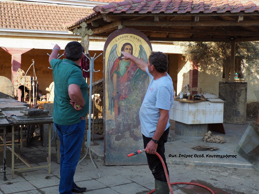 Ο κ. Αντώνιος Ταμπάκης, όταν αντίκρησε, αυτή την κατάσταση στην ίδια εκκλησία, με όλα τα μη μεταλλικά αντικίμεινα, βρεγμένα και λασπομένα, εκτός του Ιερού Ναού, εμφανώς συγκινημένος μου είπε: