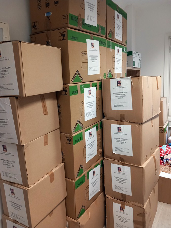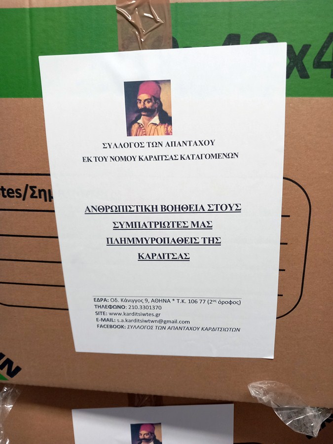 Με κεντρικό σημείο τα γραφεία του Συλλόγου των απανταχού Καρδιτσιωτών στην πλατεία Κάνιγγος στην Αθήνα, αλλά και με σημεία συγκέντρωσης σε διάφορες περιοχές της πρωτεύουσας, οι εθελοντές του Συλλόγου παρέλαβαν τα προϊόντα, τα ταξινόμησαν ανά είδος, τα απέγραψαν και τα συσκεύασαν σε ειδικά κουτιά.