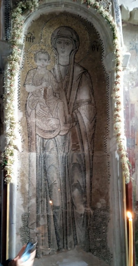 Η επίσκεψη ολοκληρώθηκε στον γραφικό ναό του Αγίου Βησσαρίωνος, γνωστός ως «Πόρτα – Παναγιά», ο οποίος είναι «κρυμμένος» σε μια κατάφυτη περιοχή. Ο ναός χρονολογείται από τον 14ο αιώνα, φιλοξενεί τα περίφημα ψηφιδωτά της Παναγίας και του Χριστού, τα οποία αποτελούν πόλο έλξης πολλών επισκεπτών λόγω της πεποίθησης ότι διαθέτουν θαυματουργές ιδιότητες.