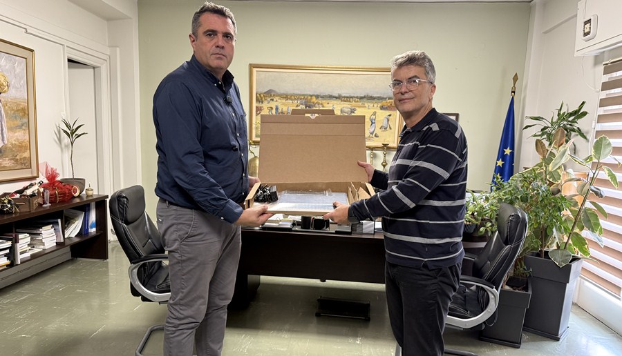 Ο Αντιπεριφερειάρχης Καρδίτσας, κ. Κωνσταντίνος Τέλιος, παρέδωσε στον υπεύθυνο του Ε.Κ.Φ.Ε. Καρδίτσας, κ. Αριστείδη Γκάτση, καθηγητή Φυσικό (ΠΕ04.01), έναν φορητό υπολογιστή (laptop).