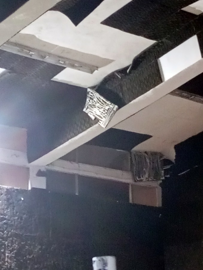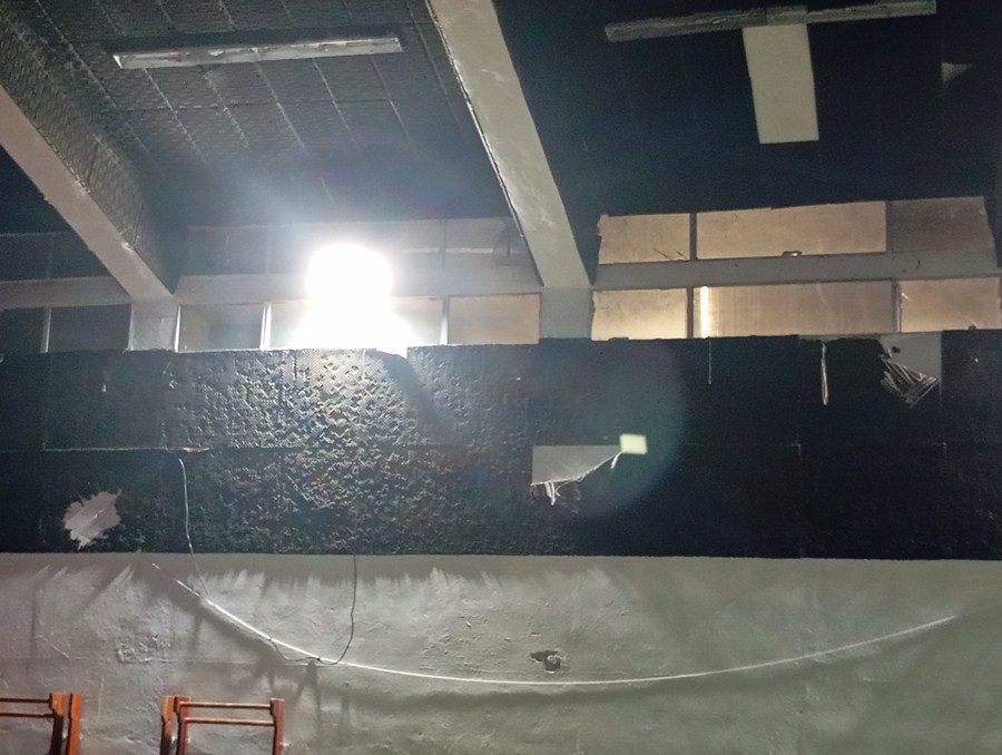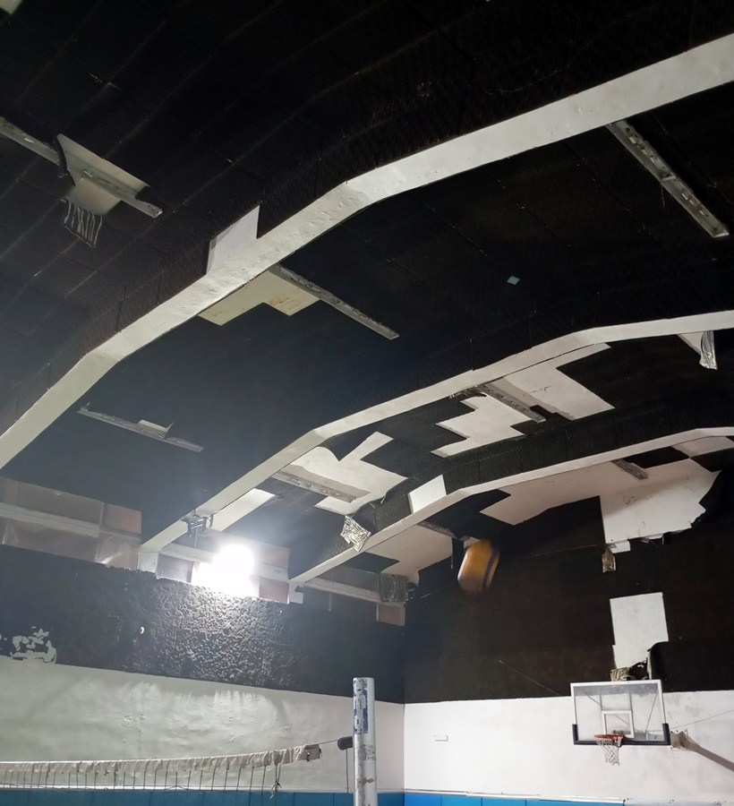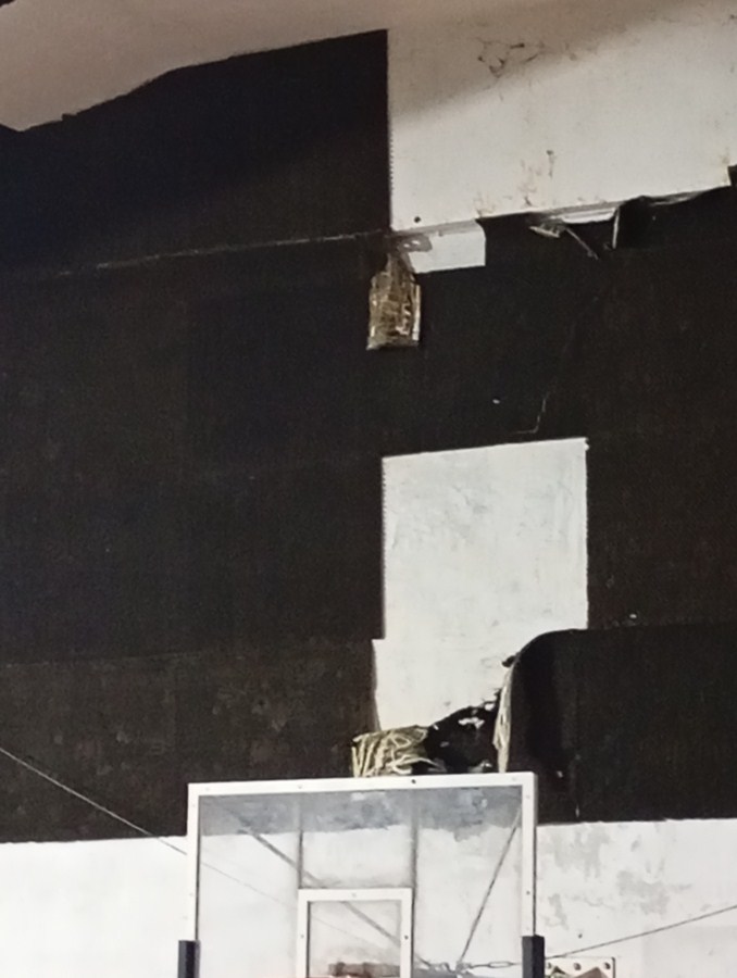 Όπως αναφέρουν, το ταβάνι του γυμναστηρίου καλύπτεται από πλαστικά υλικά, που φαίνεται να είχαν τοποθετηθεί πρόχειρα για λόγους μόνωσης, ενώ σε ορισμένα σημεία τα τζάμια είναι σπασμένα και έχουν αντικατασταθεί με χαρτόνια.