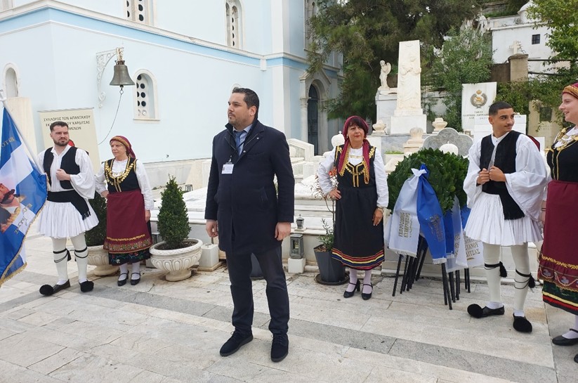 Στεφάνια κατέθεσαν στους τάφους των τιμηθέντων προσώπων, πέραν του διοργανωτή Συλλόγου των απανταχού εκ του Νομού Καρδίτσας καταγομένων, ο εκπρόσωπος της Κυβέρνησης, το κοινοβουλευτικό κόμμα «Ελληνική Λύση» οι Ένοπλες Δυνάμεις, ο Δήμος Λίμνης Πλαστήρα, το Βιοτεχνικό Επιμελητήριο Πειραιά, ο Πανελλήνιος Σύνδεσμος Αποφοίτων Ιεροδιδασκαλείου Βελλάς, η Ενορία Αγ. Θεοδώρου του Στρατηλάτη Αρτεσιανού Καρδίτσας, ο Σύλλογος των απανταχού Μαυρομματιανών Καρδίτσας «Ο Καραϊσκάκης», η Ένωση Μεσενικολιτών Αθήνας, ο Σύνδεσμος των απανταχού Μορφοβουνιωτών,η Αδελφότητα των εν Αθήναις Τσαριτσανιωτών «Κων/νος Οικονόμος ο εξ Οικονόμων» και ο Σύλλογος Θεσσαλών Ηλιούπολης «Νικόλαος Πλαστήρας».