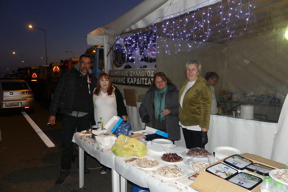 Στο μπλόκο οι αχνιστές μερίδες μοιράστηκαν σε αγρότες και υποστηρικτές, αλλά και διάφορα εδέσματα, δημιουργώντας μια ζεστή ατμόσφαιρα