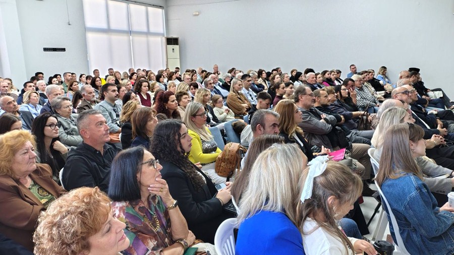 Το κοινό παρακολούθησε με ιδιαίτερο ενδιαφέρον τις τοποθετήσεις των ομιλητών, ενώ δεν έλειψαν οι συγκινητικές στιγμές όταν έγινε αναφορά στο ήθος, την επιστημονική συνέπεια και την πολυετή προσφορά του κ. Μουτσάνα στην υγεία .