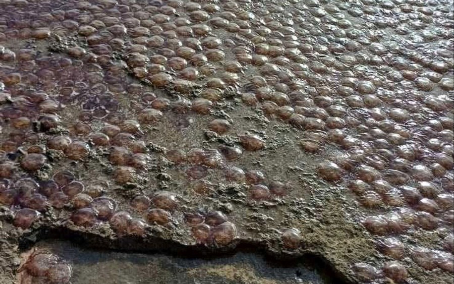 Εκατοντάδες μέδουσες έχουν ξεβραστεί σε παραλία της Εύβοιας, όπως αποτυπώνεται σε φωτογραφία που δημοσίευσε ο περιφερειάρχης Στερεάς Ελλάδας, Φάνης Σπανός.
