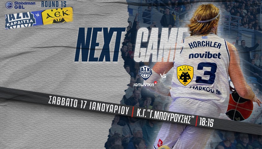 Ο Α.Σ. Καρδίτσας ΙΑΠΩΝΙΚΗ υποδέχεται την ΑΕΚ το Σάββατο στις 6.15 μ.μ. στο Νέο Κλειστό Γυμναστήριο της πόλης, σε ένα πολύ σημαντικό αγωνιστικό και βαθμολογικό «σταυροδρόμι» της Stoiximan GBL.