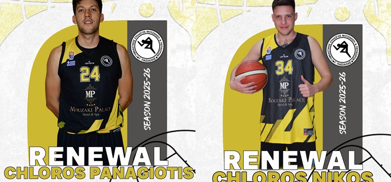 Ο Γ.Σ. Μουζακίου & Περιχώρων «Γ. Πασιαλής» βρίσκεται στην ευχάριστη θέση να ανακοινώσει την ανανέωση της συνεργασίας με δύο αθλητές που αποτελούν σημαντικά μέλη της οικογένειας του συλλόγου μας: τα αδέρφια Παναγιώτη και Νίκο Χλωρό.
