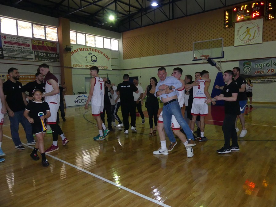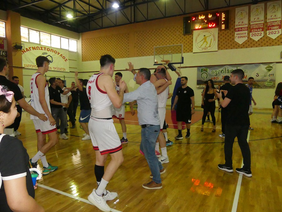 Ο Γ.Σ. Σοφάδων ολοκλήρωσε με θρίαμβο τη σειρά των τελικών, νίκησε και πάλι τον Εθνικό Λιβαδειάς, αυτή τη φορά με 83-65 και με σκορ 3-1 πήρε την άνοδο