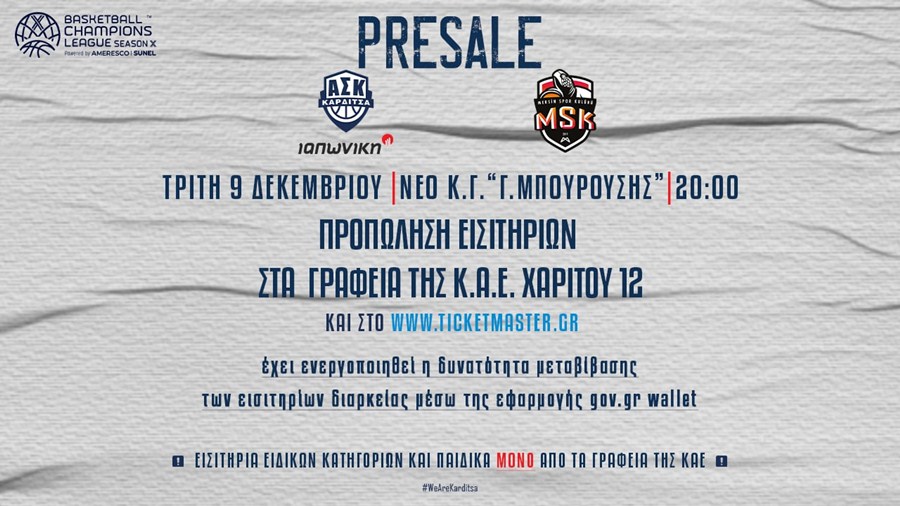 Το τελευταίο εντός έδρας ευρωπαϊκό ματς για το 2025 πλησιάζει και την Τρίτη 9 Δεκεμβρίου στις 8 μ.μ. ο Α.Σ. Καρδίτσας ΙΑΠΩΝΙΚΗ υποδέχεται την Τουρκική Μερσίν για την 5η αγωνιστική της Φάσης των Ομίλων του Basketball Champions League.