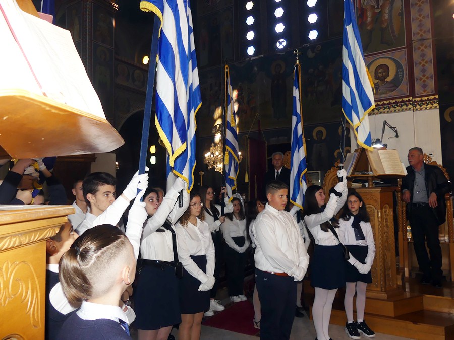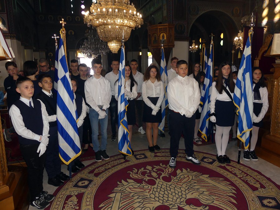 Το πρωί, τελέστηκε επίσημη δοξολογία στον Ιερό Ναό Αγίας Παρασκευής χοροστατούντος του Αιδεσιμολογιωτατου π. Ηλία Γώγου, ενώ η εκφώνηση του πανηγυρικού της ημέρας εντός του Ιερού Ναού έγινε από την από την κα Τσιτώνα Παρασκευή, υποδιευθύντρια του 1ου Δημοτικού Σχολείου Σοφάδων.