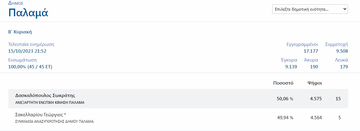 Σε θρίλερ εξελίχθηκε η δεύτερη Κυριακή των εκλογών στο Δήμο Παλαμά.