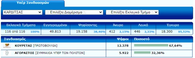 Συντριπτική ήταν η επικράτηση του Δημήτρη Κουρέτα στις εκλογές της Κυριακής και στην ΠΕ Καρδίτσας.