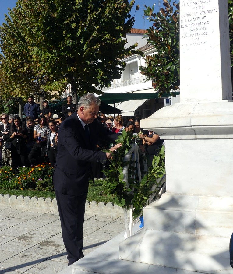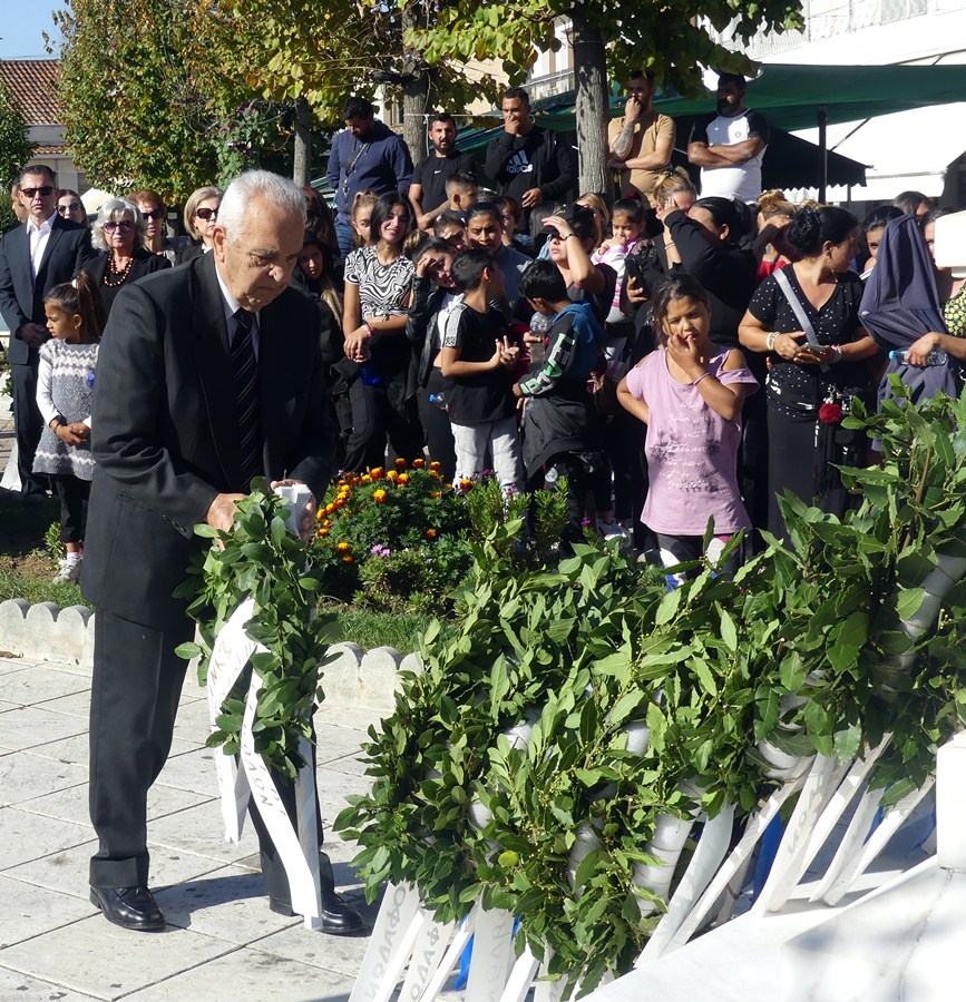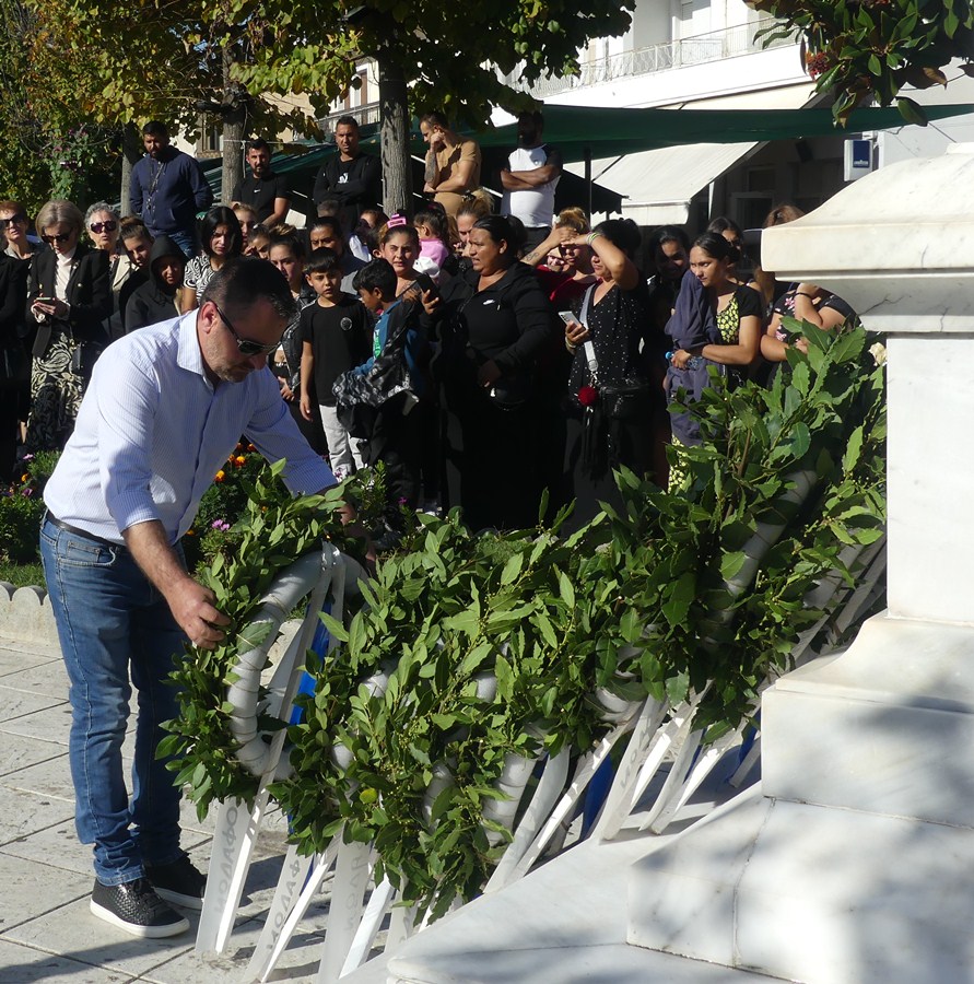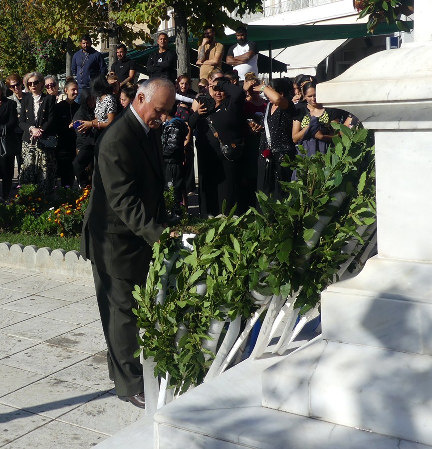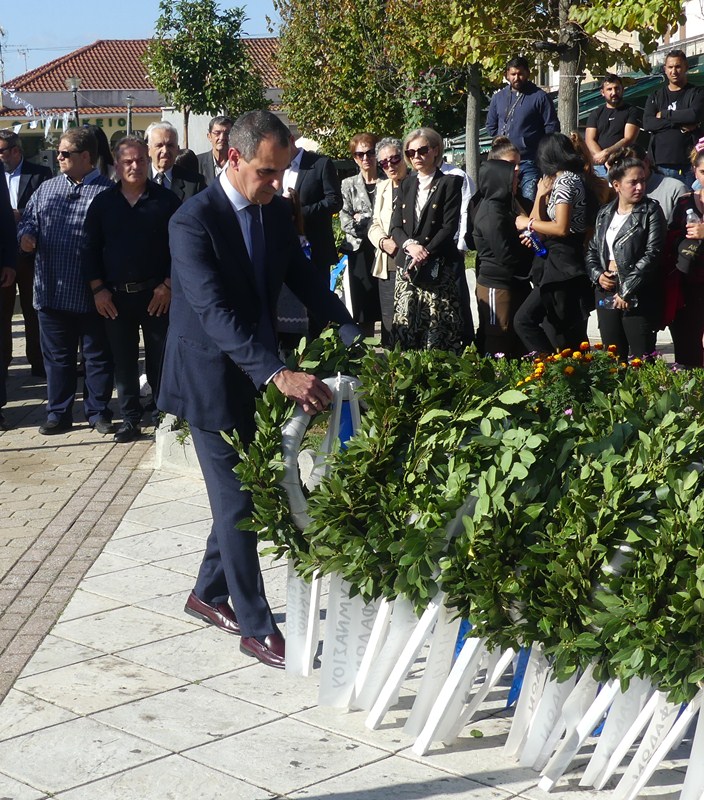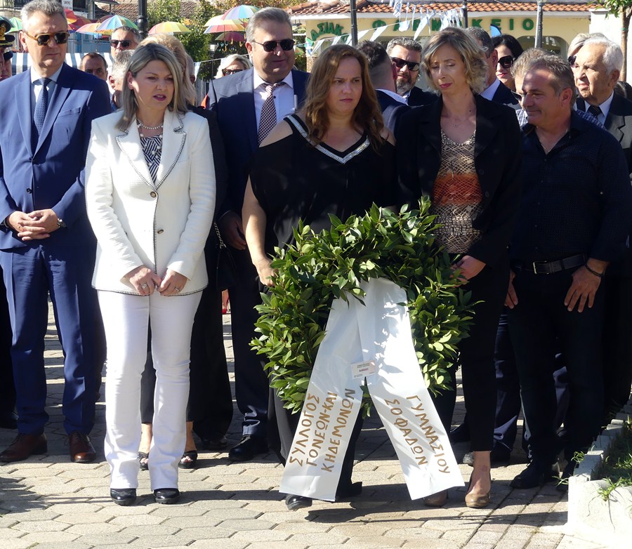 Ακολούθως στο μνημείο Ηρώων πραγματοποιήθηκε επιμνημόσυνη δέηση και κατάθεση στεφάνων από, το Δήμαρχο Σοφάδων κ. Θάνο Σκάρλο, το βουλευτή Καρδίτσας κ. Γιώργο Κωτσό , των στρατιωτικών Αρχών του τόπου, εκπροσώπων πολιτικών κομμάτων καθώς και Εκπροσώπων Συλλόγων και σχολείων.