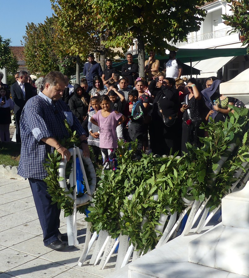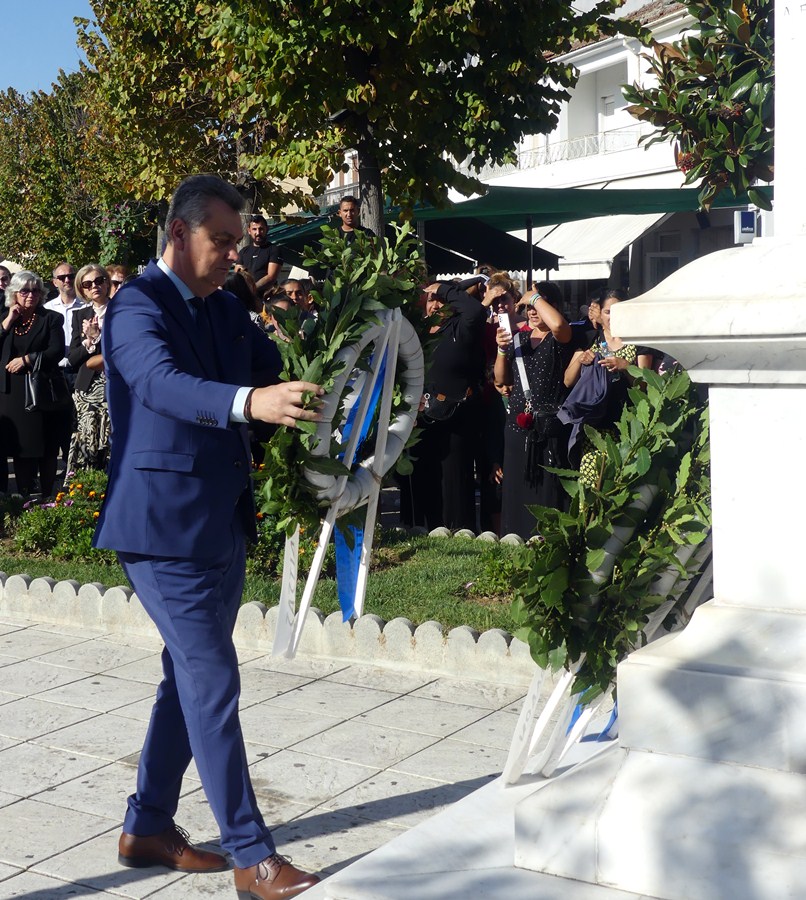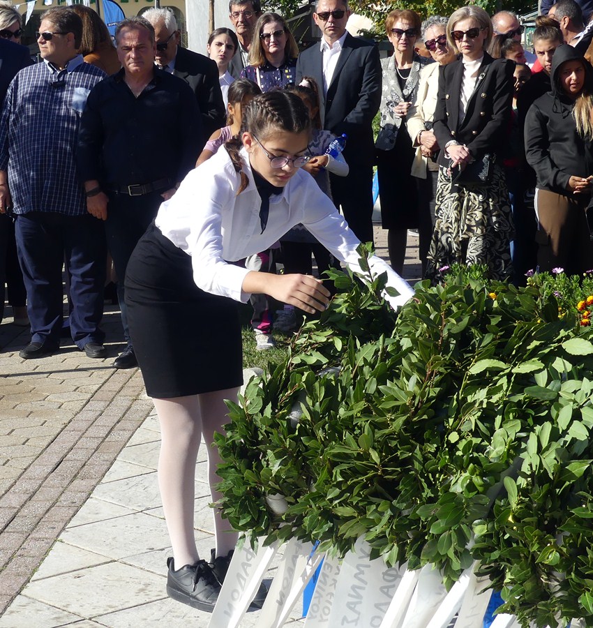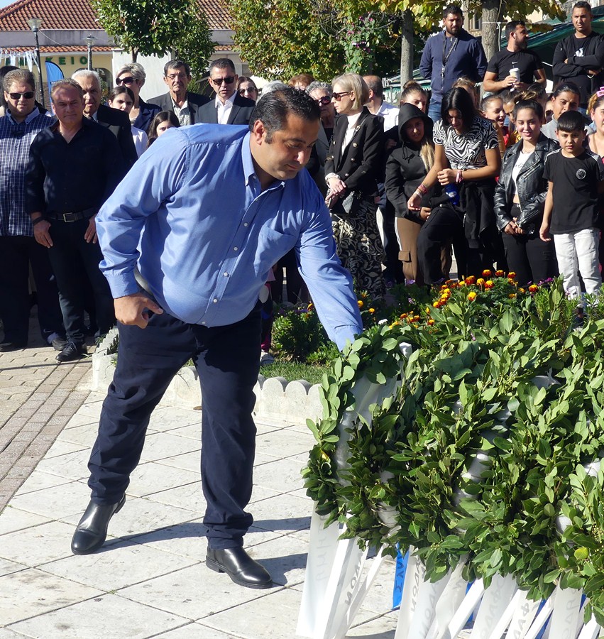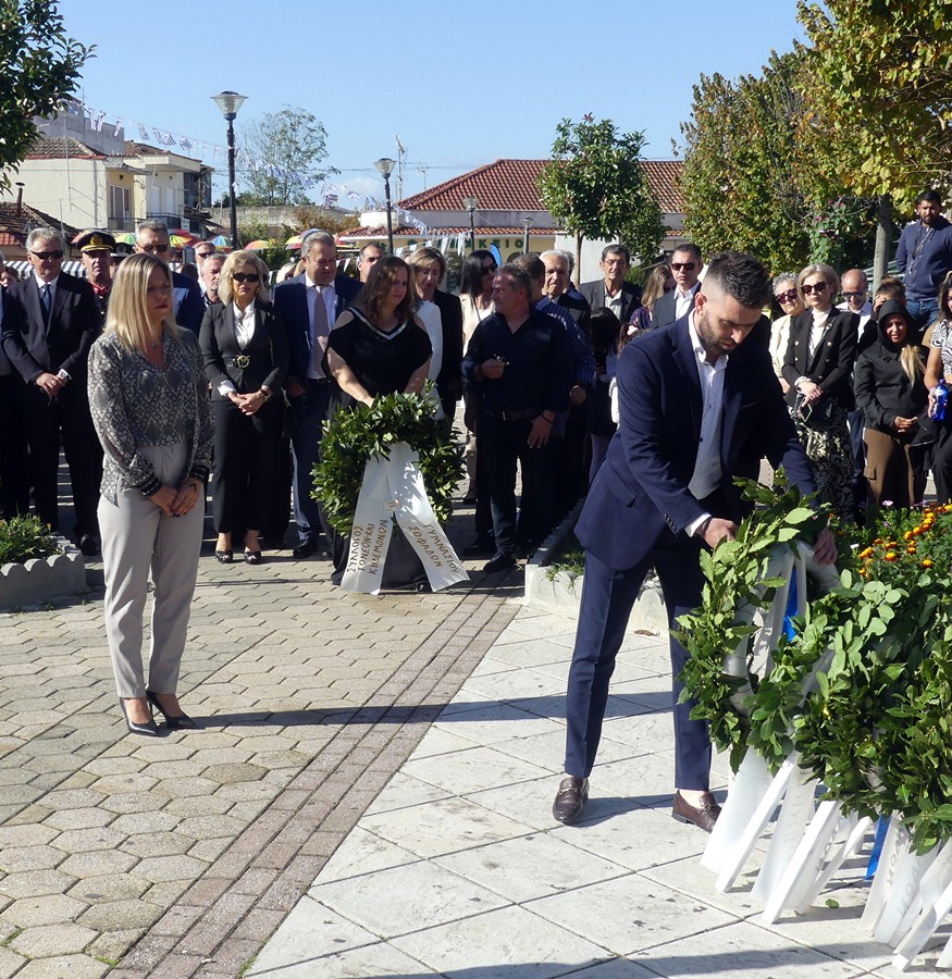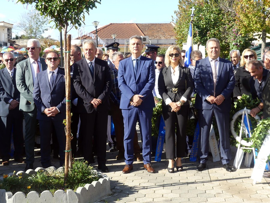 Ακολούθως στο μνημείο Ηρώων πραγματοποιήθηκε επιμνημόσυνη δέηση και κατάθεση στεφάνων από, το Δήμαρχο Σοφάδων κ. Θάνο Σκάρλο, το βουλευτή Καρδίτσας κ. Γιώργο Κωτσό , των στρατιωτικών Αρχών του τόπου, εκπροσώπων πολιτικών κομμάτων καθώς και Εκπροσώπων Συλλόγων και σχολείων.