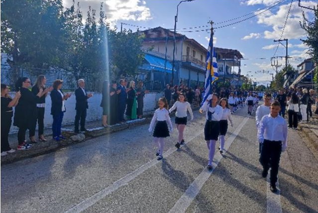 Στη συνέχεια κατατέθηκαν στο ηρώο της πλατείας δάφνινα στεφάνια εις μνήμην των ηρωικών πεσόντων και ακολούθησε παρέλαση του σχολείου στην οδό Αγίου Δημητρίου, παρουσία των επισήμων . Τα τμήματα παρέλασαν σε άψογο σχηματισμό και απέσπασαν τα χειροκροτήματα του πλήθους που παρακολούθησε την παρέλαση. Ήταν ο φόρος ελάχιστης τιμής που απέδωσαν οι μαθητές/τριες του σχολείου σε όλους εκείνους που θυσίασαν, ως ελεύθερες ψυχές, τη ζωή τους για μια ελεύθερη Ελλάδα.!!!!