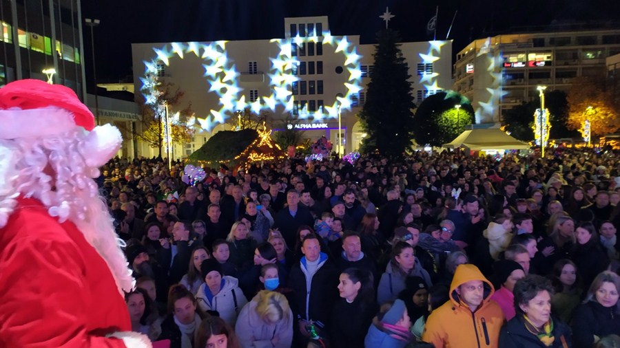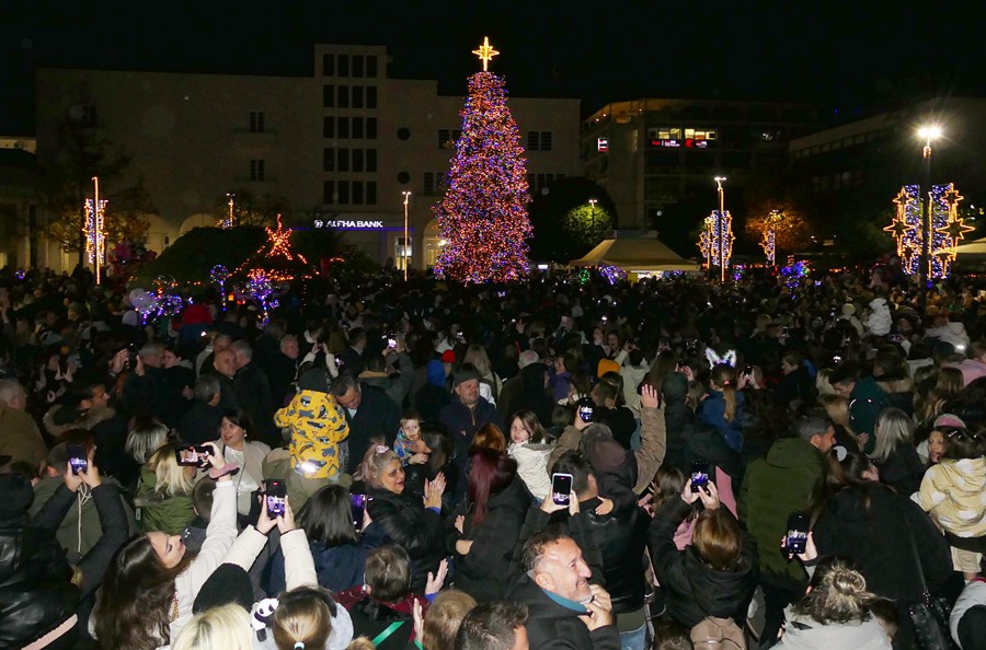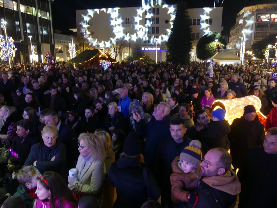 Χιλιάδες κόσμου έδωσαν το παρών στην καθιερωμένη γιορτή φωταγώγησης του χριστουγεννιάτικου δέντρου στην κεντρική πλατεία της πόλης.