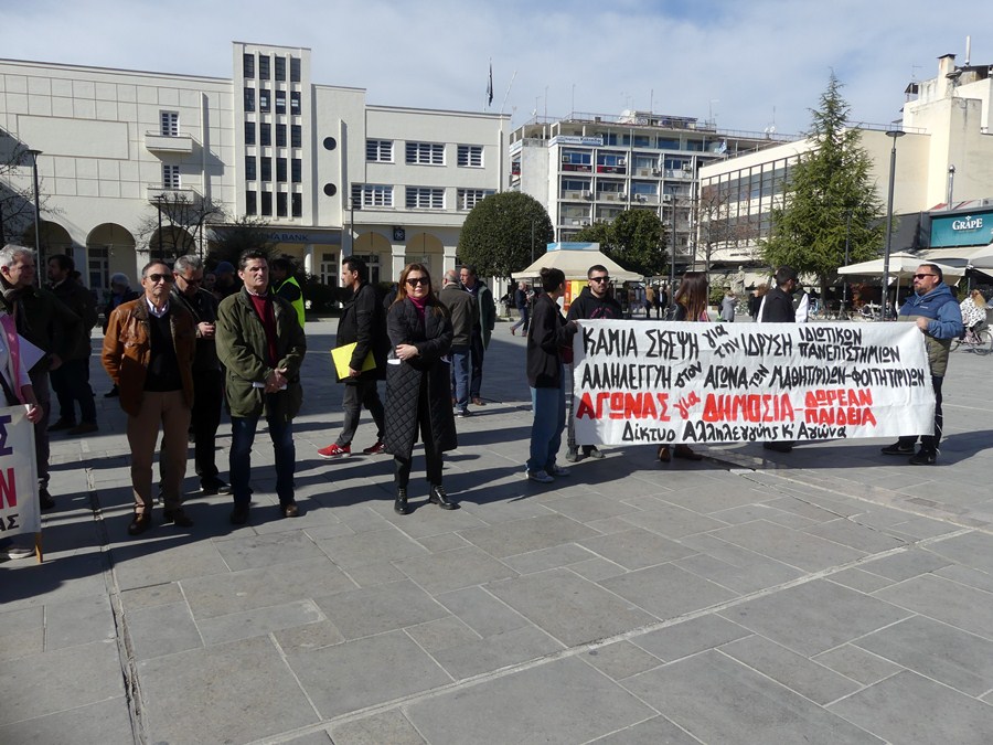Ενάντια στο νομοσχέδιο για τα ιδιωτικά πανεπιστήμια και την επαγγελματική εκπαίδευση διαδήλωσαν το μεσημέρι της Πέμπτης στην Κεντρική Πλατεία Καρδίτσας η ΕΛΜΕ και ο Σύλλογος Εκπαιδευτικών Πρωτοβάθμιας Εκπαίδευσης Ν. Καρδίτσας μαζί με τοπικούς φορείς.