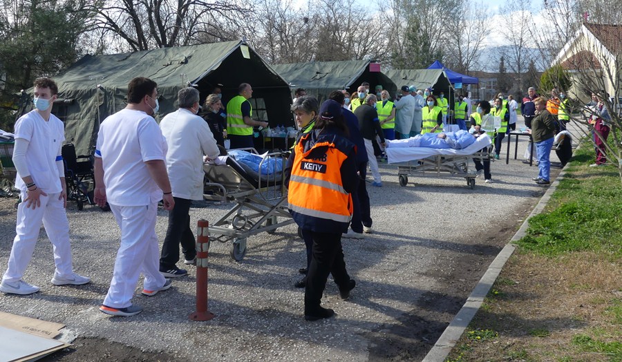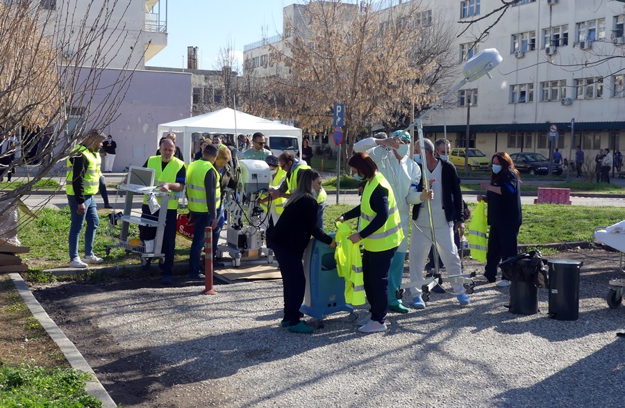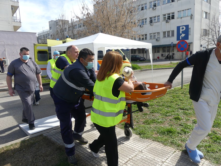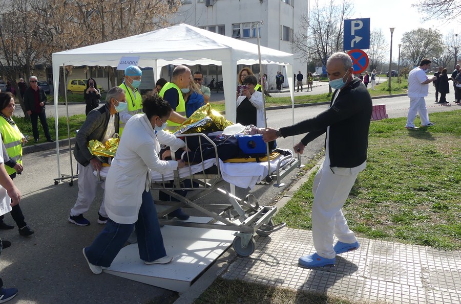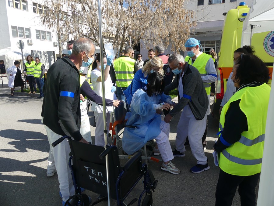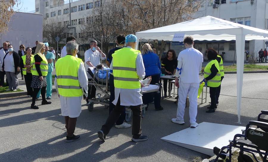 «Ενας καταστροφικός σεισμός μεγέθους 6,8 ρίχτερ και με επίκεντρο την περιοχή των Σοφάδωνν είχε ως αποτέλεσμα το ξέσπασμα πυρκαγιάς σε χώρους του Γενικού Νοσοκομείου Καρδίτσας και την ανάγκη επιχείρησης εκκένωσης της Ψυχιατρικής Κλινικής καθώς επίσης και την μεταφορά ασθενών από το δεύτερο κτίριο του νοσοκομείου(χειρουργική, ουρολογική, ορθοπεδική κλπ) λόγω κτιριακών ζημιών σε πρόχειρα καταλύματα». Αυτό ήταν το σενάριο άσκησης που εξελίχθηκε στο Γενικό Νοσοκομείο Καρδίτσας το πρωί της Πέμπτης