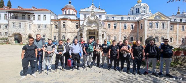 Με την ευλογία του Δικαίου Γέροντα Φιλήμωνα οι προσκυνητές αναχώρησαν μέσα από το μονοπάτι για τον επόμενο σταθμό τους την Μονή Παντοκράτορος, όπου και διανυκτέρευσαν.