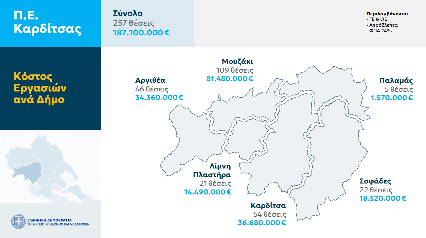 Αποκατάσταση ζημιών στο Οδικό Δίκτυο και υποδομές Π.Ε. Καρδίτσας