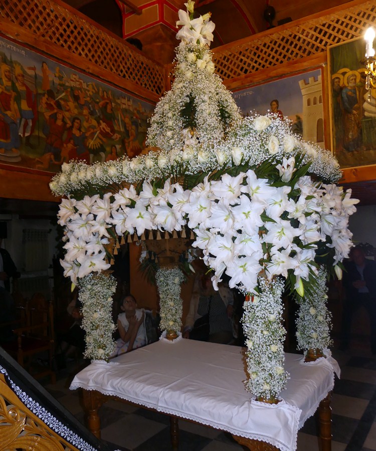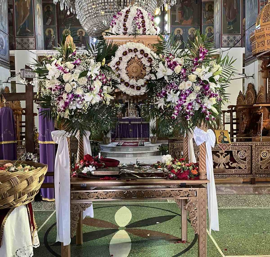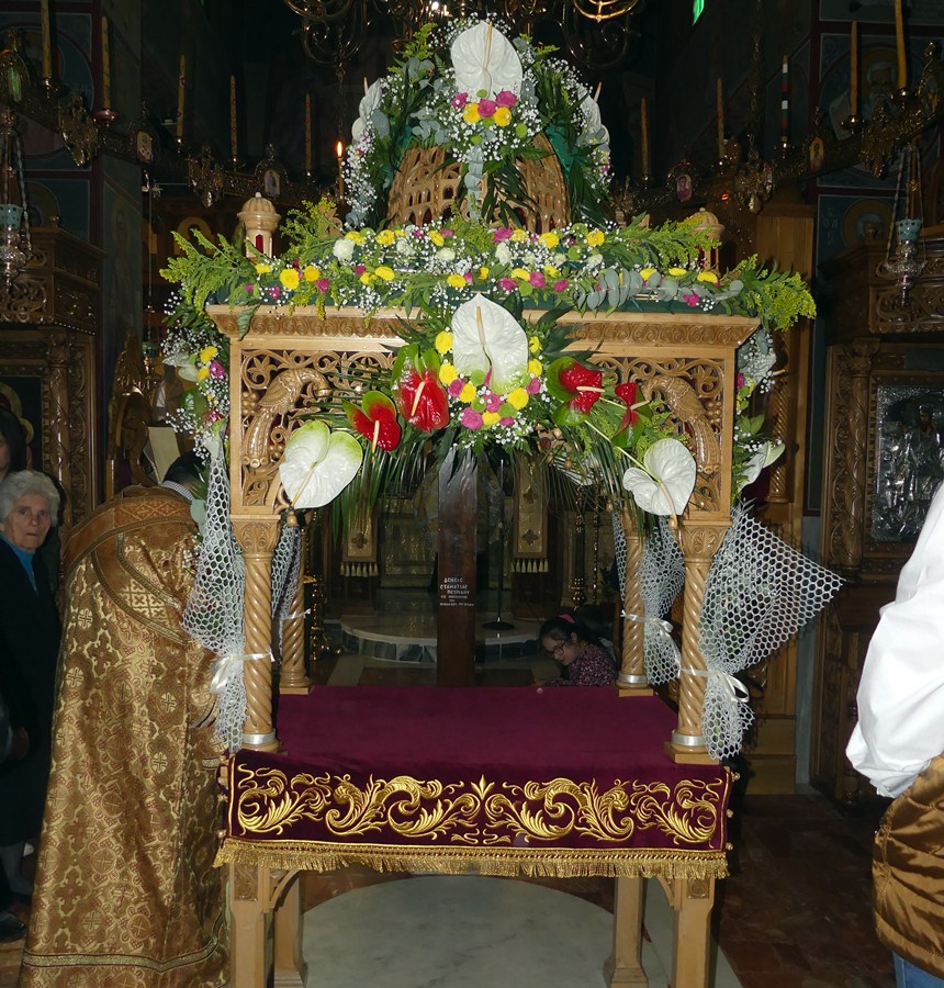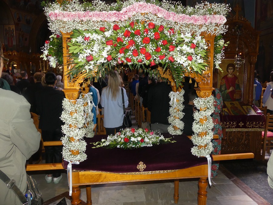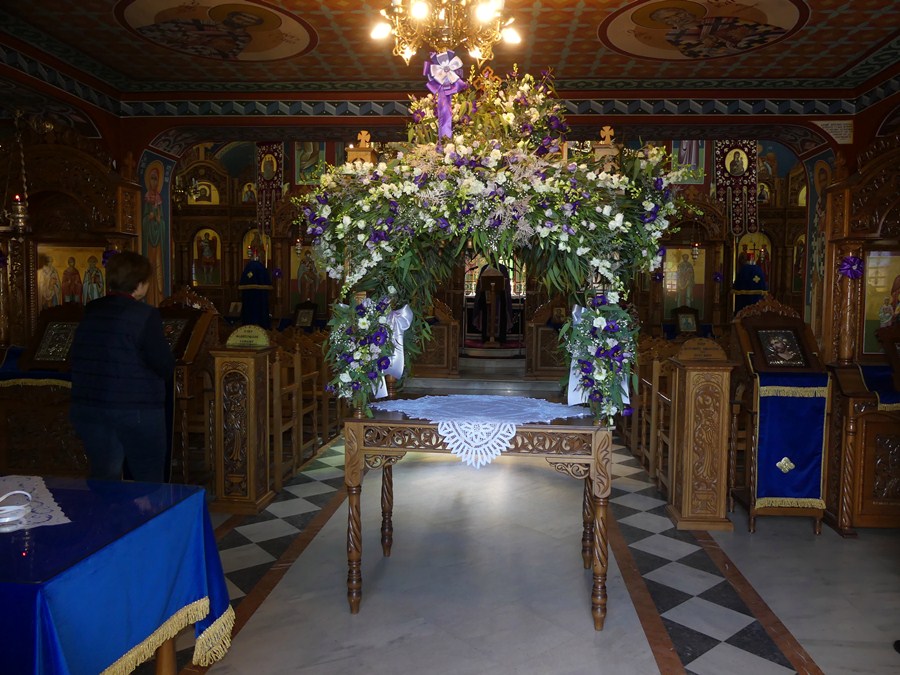 Με βαθιά θρησκευτική κατάνυξη, όπως επιτάσσει η μέρα, στολίστηκαν οι επιτάφιοι των Ιερών Ναών με ανοιξιάτικα λουλούδια και στεφάνια, ψέλνοντας το μοιρολόι της Παναγίας.