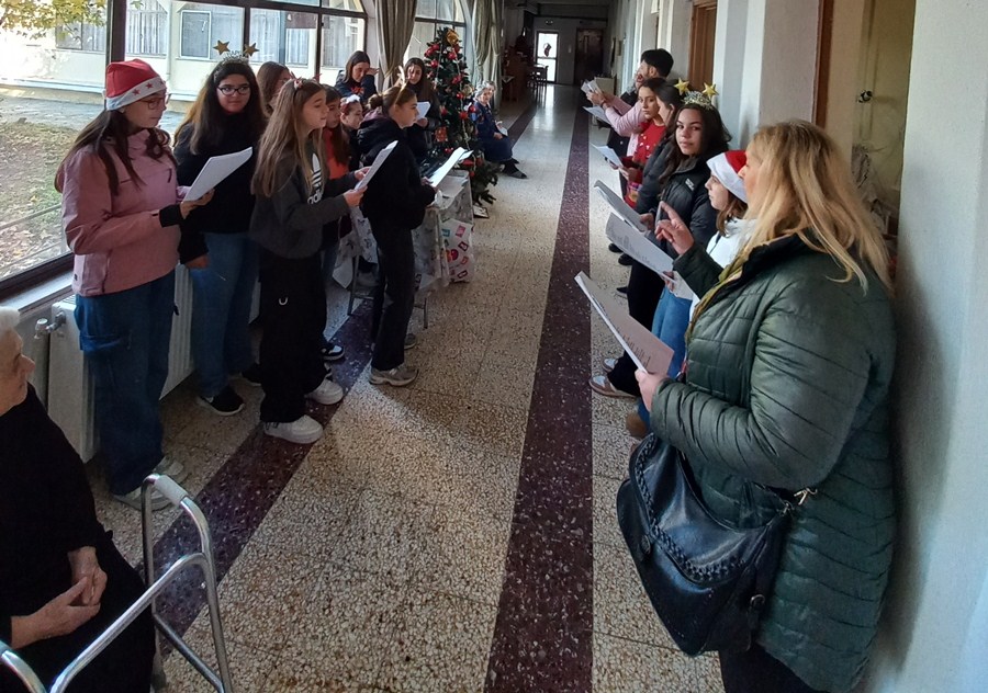 Οι μαθήτριες του Σχολείου τραγούδησαν τα κάλαντα, χριστουγεννιάτικα τραγούδια και αντάλλαξαν ευχές με τις ηλικιωμένες φιλοξενούμενες του Ιδρύματος και το προσωπικό και προσέφεραν μικρά δώρα για τις γιορτές.