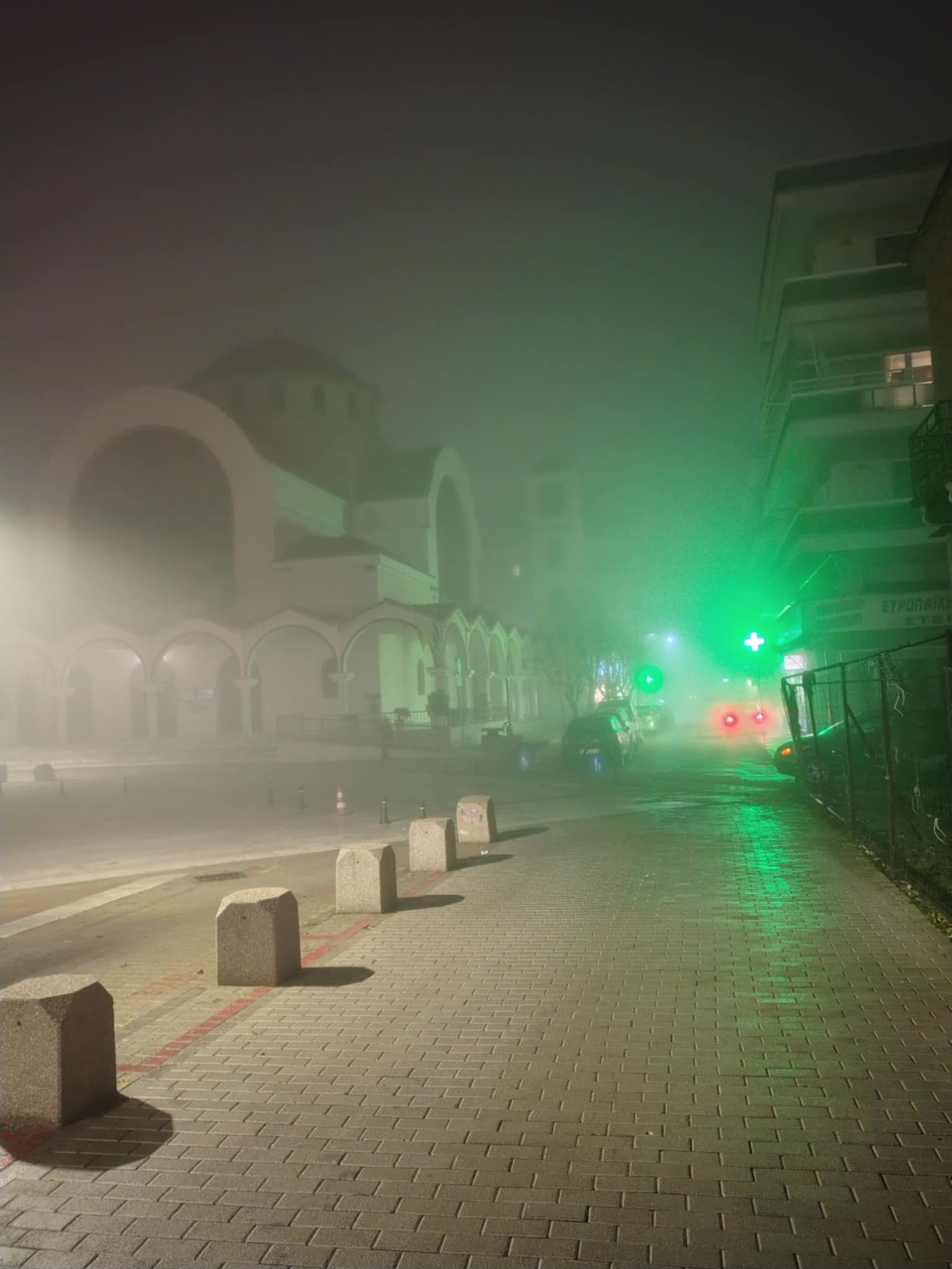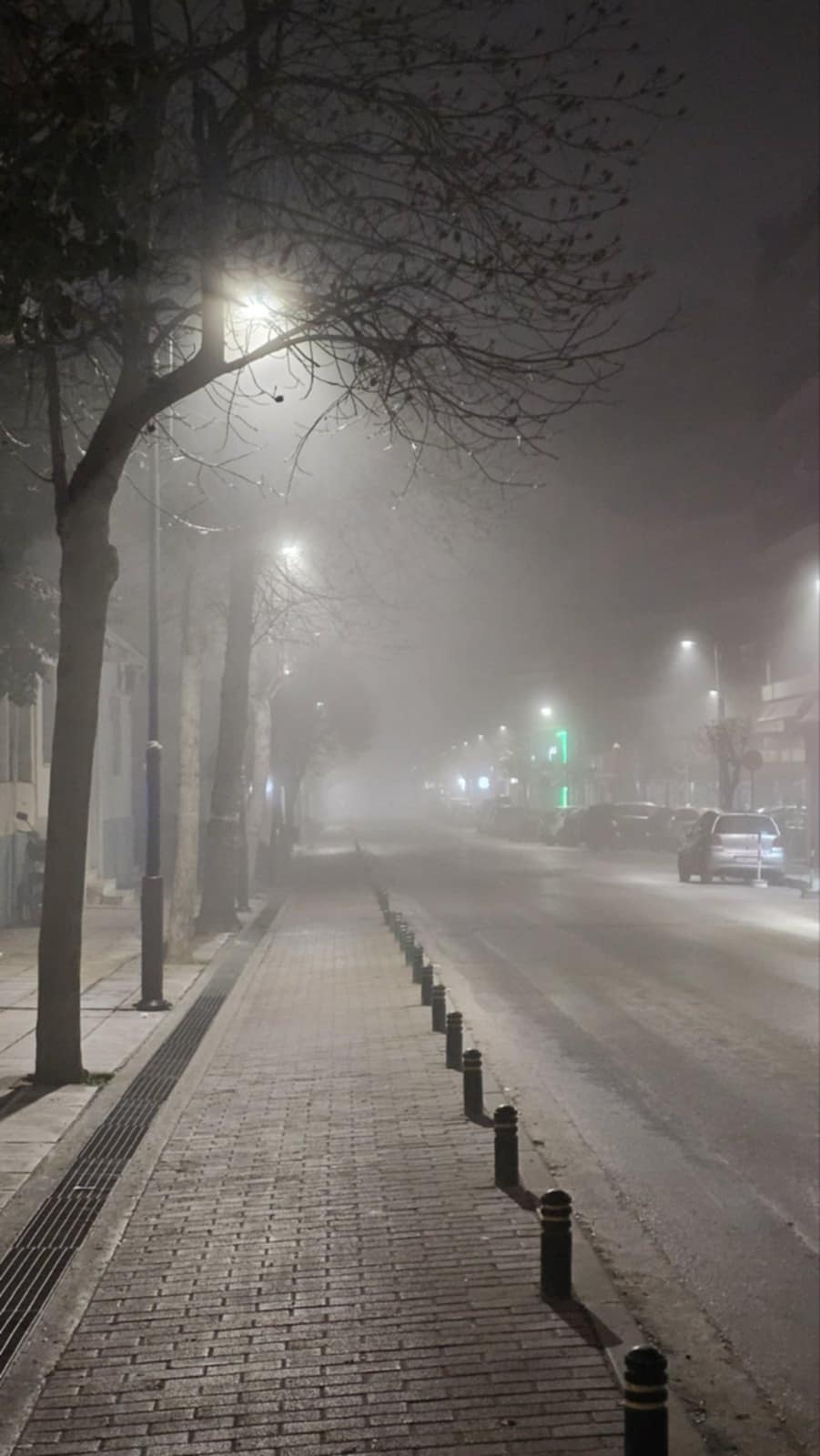 Εντυπωσιακό πέπλο ομίχλης κάλυψε το βράδυ την πόλη της Καρδίτσας.