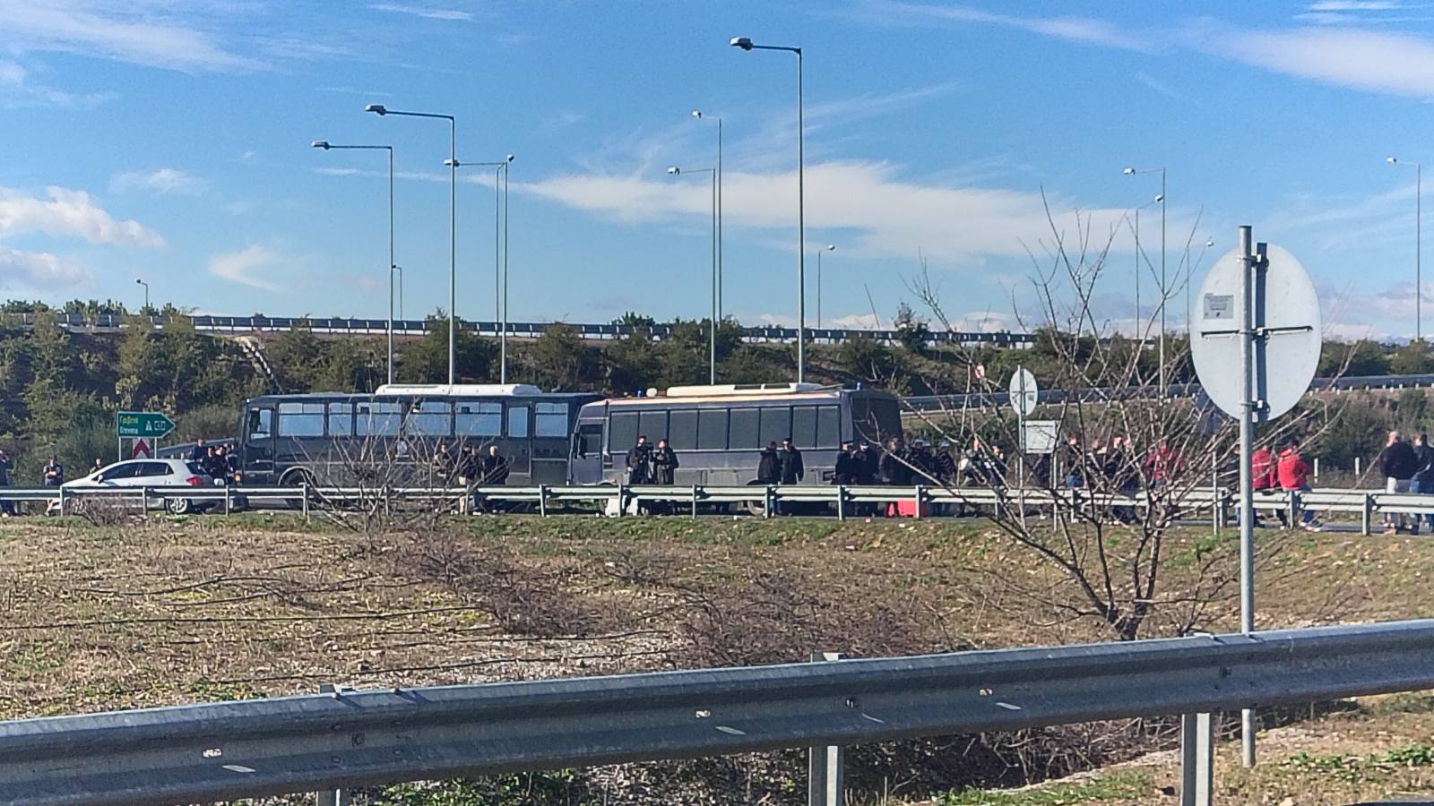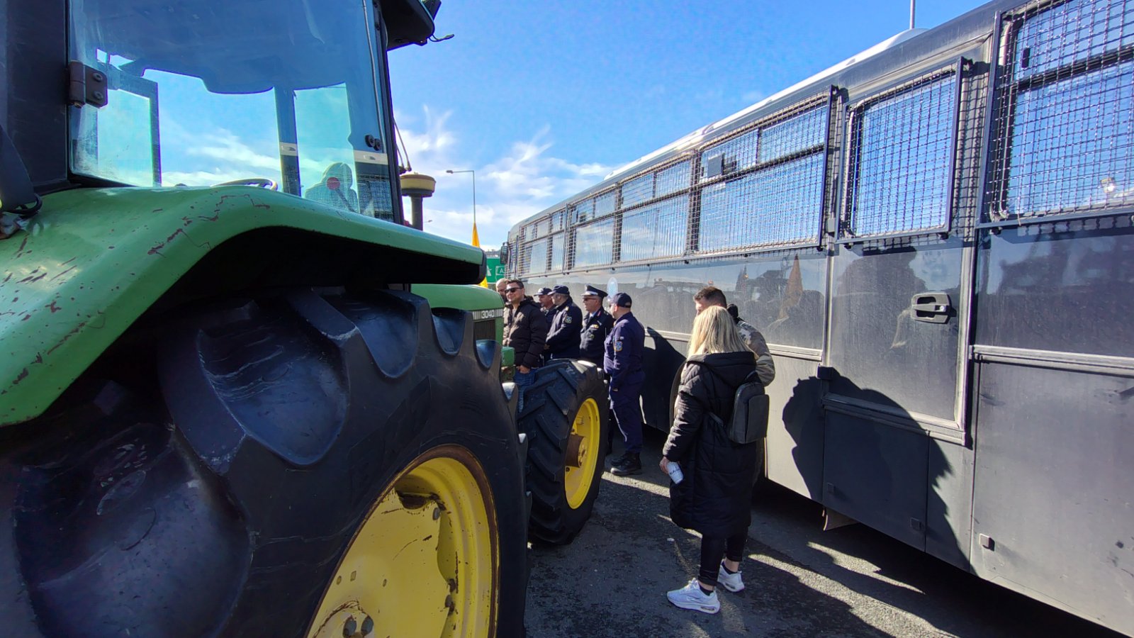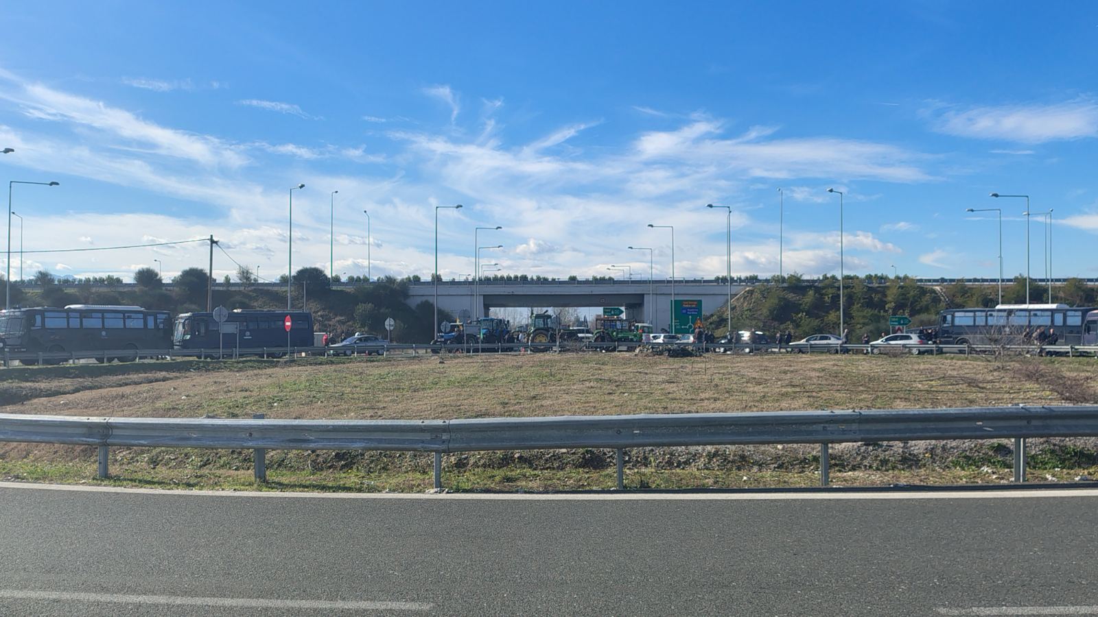 Στον κόμβο βρίσκονται από νωρίς ισχυρές αστυνομικές δυνάμεις με αποστολή να μην επιτρέψουν την άνοδο των τρακτέρ στο οδόστρωμα του Ε65