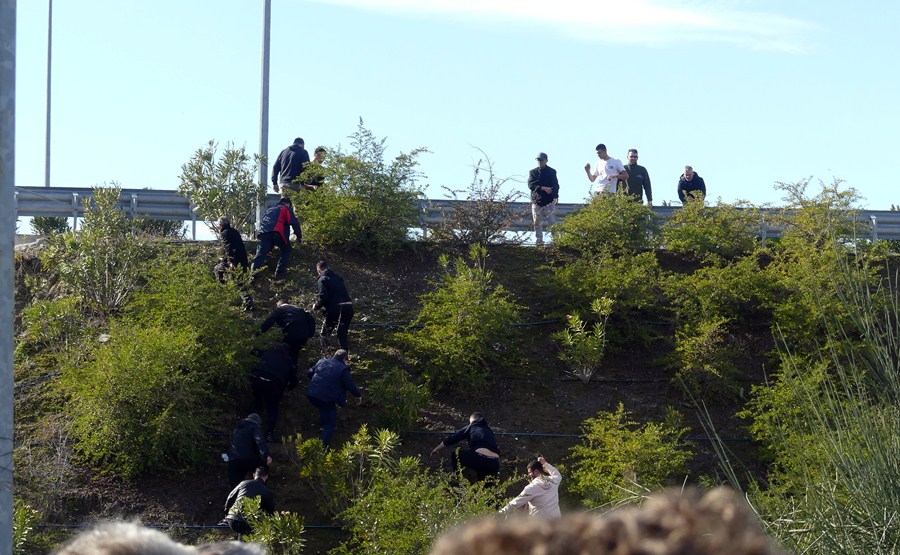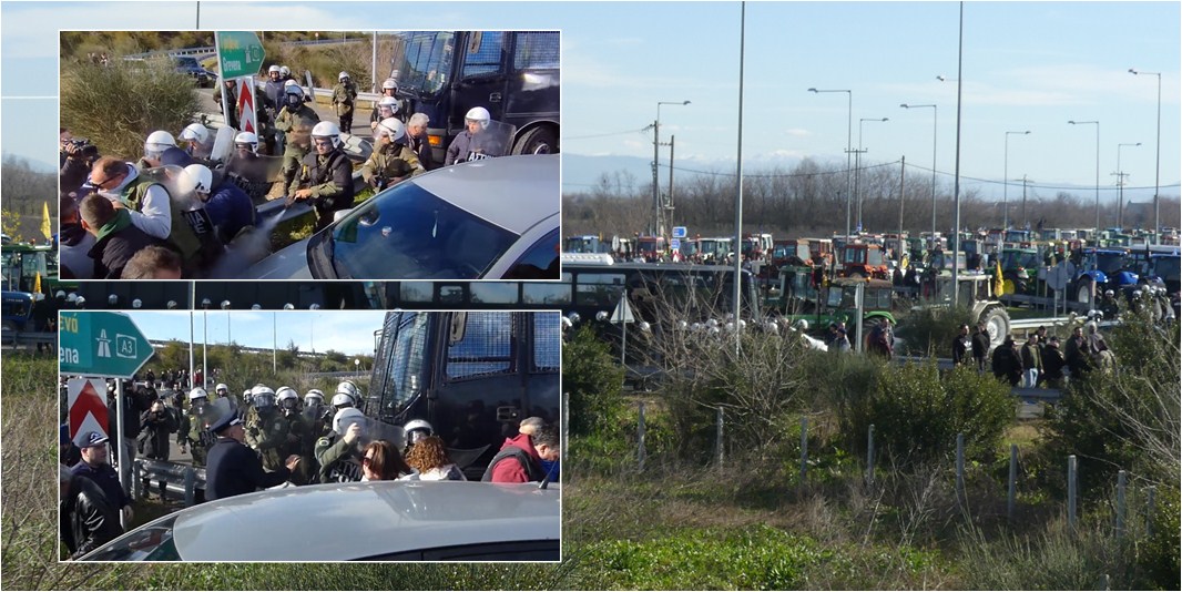Ακολούθως κινήθηκαν πεζοί για να ανέβουν στον Ε65 και οι αστυνομικοί έκαναν ρίψη χημικών για να τους εμποδίσουν ενώ δράση ανέλαβαν και τα ΜΑΤ.