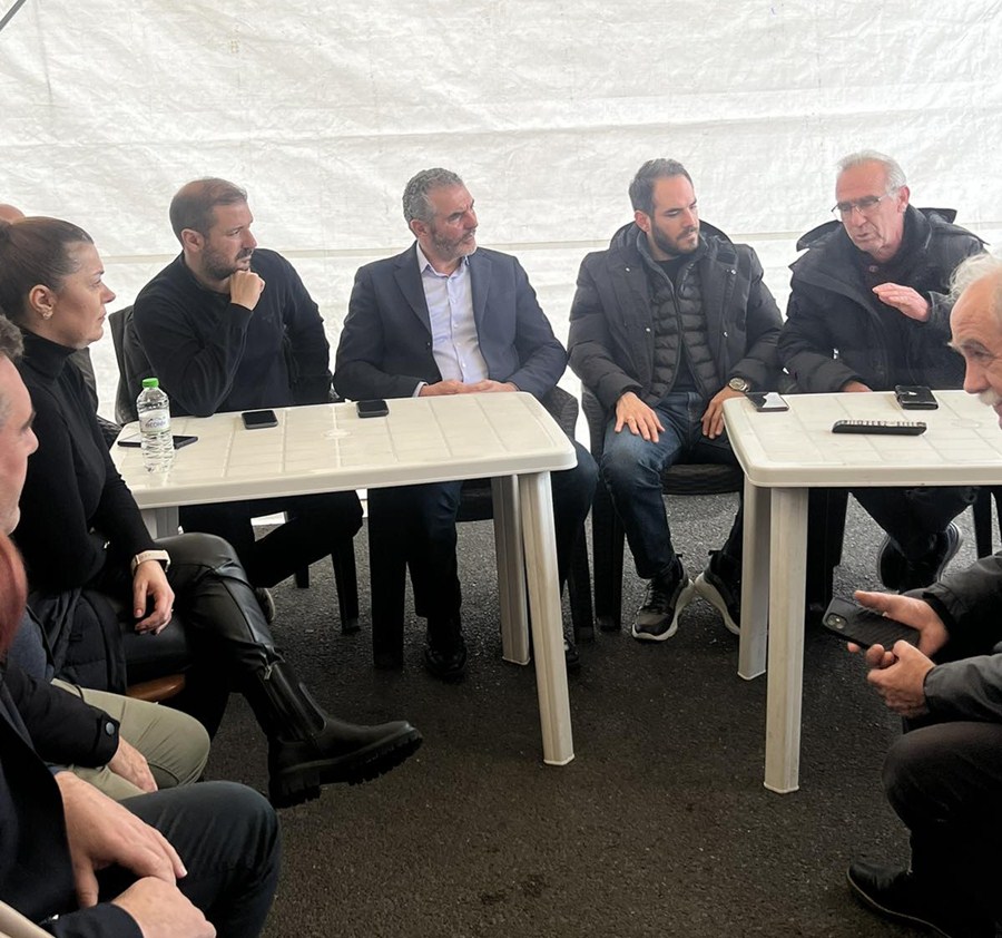 Το κλιμάκιο συναντήθηκε και συνομίλησε με τον Πρόεδρο Τζέλλα Κώστα και τα στελέχη της ομοσπονδίας των αγροτών αλλά και τους απλούς παραγωγούς που δίνουν την μάχη τους στο μπλόκο του Ε65.