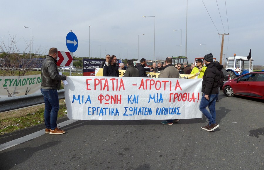 Την στήριξή τους στον αγώνα των αγροτών εξέφρασαν φορείς, Σωματεία και Σύλλογοι, που βρέθηκαν το πρωί της Κυριακής στο μπλόκο του κόμβου Καρδίτσας του Ε65.