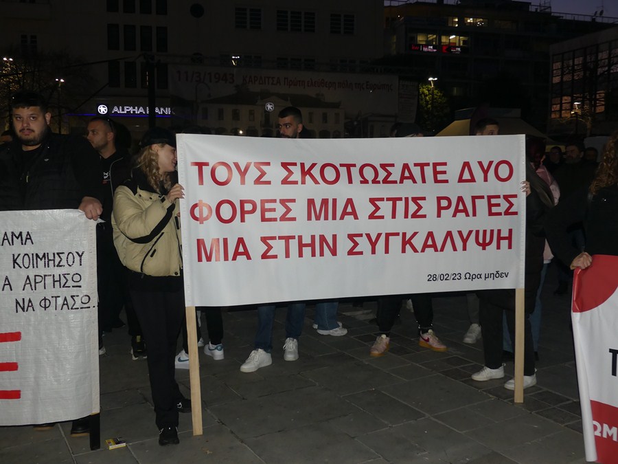 Νέο συλλαλητήριο για την τραγωδία των Τεμπών πραγματοποιήθηκε το απόγευμα στην κατάμεστη κεντρική πλατεία της Καρδίτσας. Το κάλεσμα απηύθυναν εργατικά σωματεία και σύλλογοι και φοιτητικοί σύλλογοι