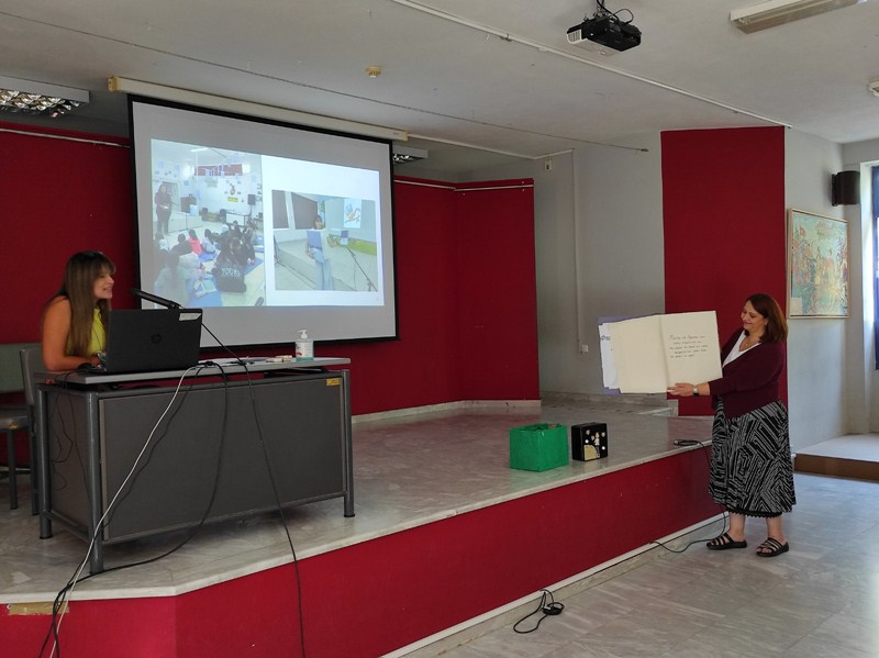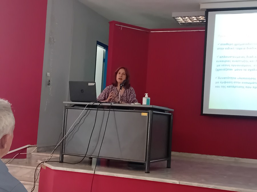 Στη συνέχεια πήρε τον λόγο η κ. Ε. Κοντού, υπεύθυνη Προγραμμάτων Erasmus της Διεύθυνσης Πρωτοβάθμιας Εκπαίδευσης Καρδίτσας, η οποία αναφέρθηκε στα προστιθέμενα οφέλη της απονομής Διαπίστευσης ΙΚΥ για τις σχολικές μονάδες της ΔΙΠΕ Καρδίτσας και εξήγησε τα επόμενα βήματα που θα ακολουθήσουν με βάση το πενταετές πρόγραμμα.