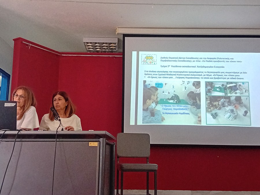 Χαιρετισμό απηύθυνε και ο Επόπτης Ποιότητας της Εκπαίδευσης ν. Καρδίτσας, κ. Α. Μπότας, ο οποίος συνεχάρη τους/τις εκπαιδευτικούς για τη διάθεση συμμετοχής τους σε προγράμματα που εμπλουτίζουν την εκπαιδευτική διαδικασία και στοχεύουν στην ανάπτυξη δεξιοτήτων που θα καταστήσουν τους/τις μαθητές/τριες αυριανούς ενεργούς πολίτες. Στην Ημερίδα παρευρέθηκε η Σύμβουλος Εκπαίδευσης Νηπιαγωγών ν. Καρδίτσας, κ. Δ. Κωτσιοπούλου, και η Αναπληρώτρια Προϊσταμένη Εκπαιδευτικών Θεμάτων κ. Κ. Κωνσταντάκου οι οποίες παρακολούθησαν με ενδιαφέρον την Ημερίδα.
