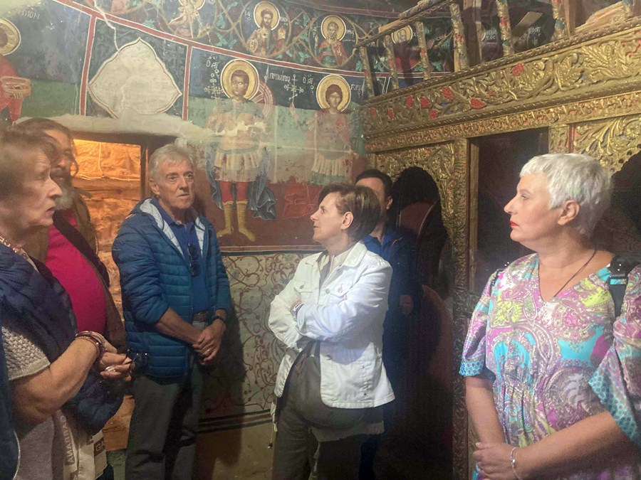 Μετά τον καφέ μας στην γραφική πλατεία του χωριού, επισκεφτήκαμε το μουσείο Εθνικής Αντίστασης και το Λαογραφικό Μουσείο. Συνεχίσαμε με ξενάγηση στον Μουσειακό Ναό Αγ. Γεωργίου και στο Μουσείο Βυζαντινής και Μεταβυζαντινής Τέχνης. Μέσα σε ένα πρωινό, πέντε μνημειακοί χώροι-μουσεία του Νομού, άνοιξαν τις πόρτες τους και μας υποδέχτηκαν γνωρίζοντάς μας τους θησαυρούς και την ιστορία τους.