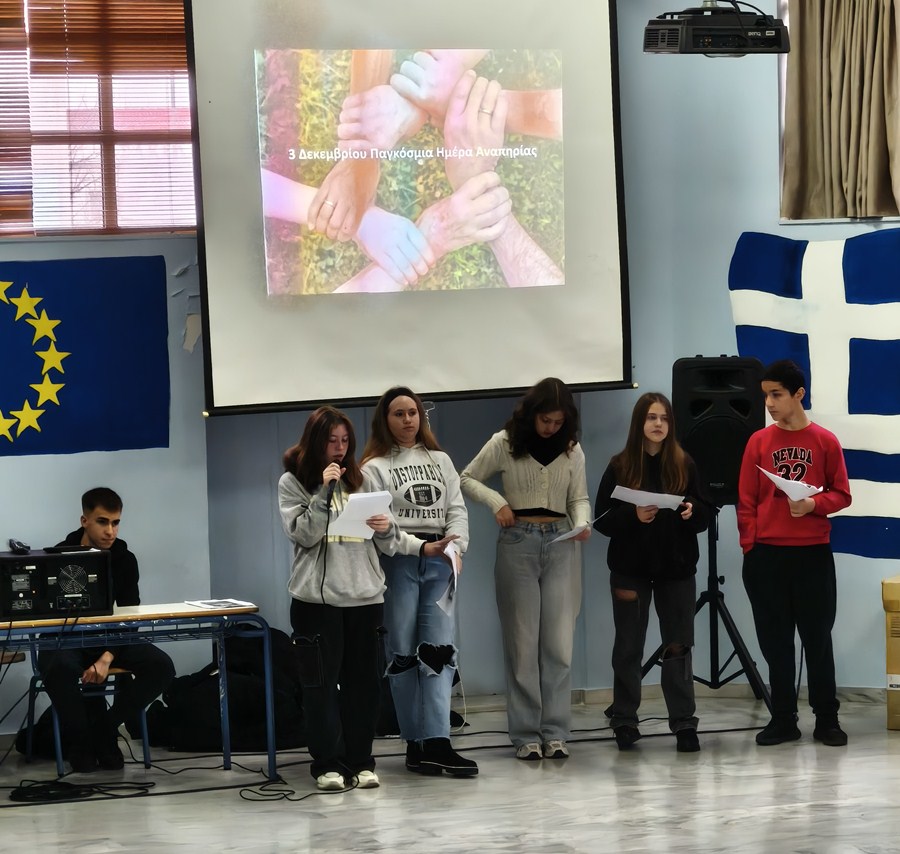 Με αφορμή την Παγκόσμια Ημέρα Ατόμων με Αναπηρία, το 7ο Γυμνάσιο Καρδίτσας πραγματοποίησε μια σειρά από βιωματικές και εκπαιδευτικές δράσεις με στόχο την ευαισθητοποίηση των μαθητών, την καλλιέργεια ενσυναίσθησης και την προώθηση της συμπερίληψης στο σχολικό περιβάλλον.