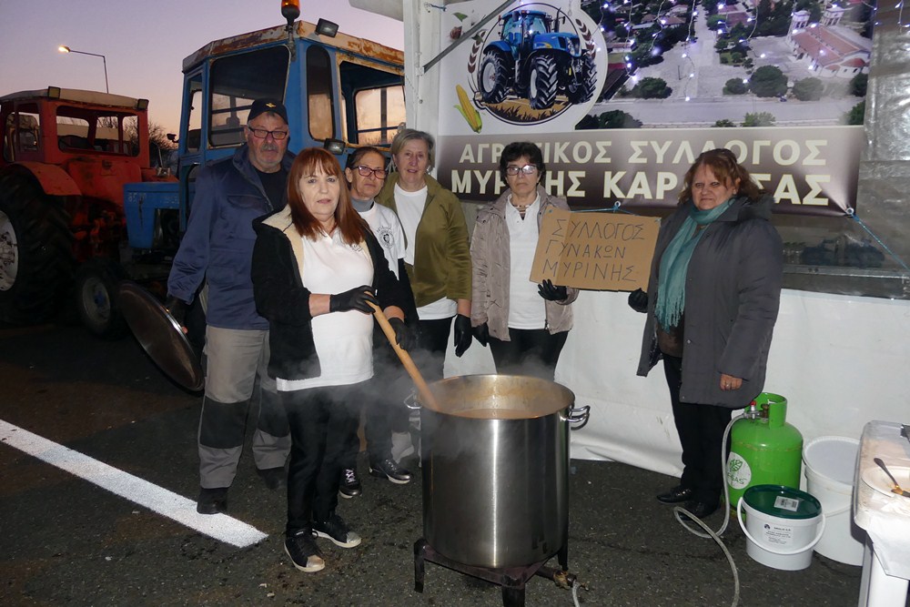 Ο Σύλλογος Γυναικών Μύρινης βρέθηκε στο πλευρό των αγροτών, προσφέροντας όχι μόνο στήριξη με την παρουσία του, αλλά και μια ζεστή … φασολάδα.