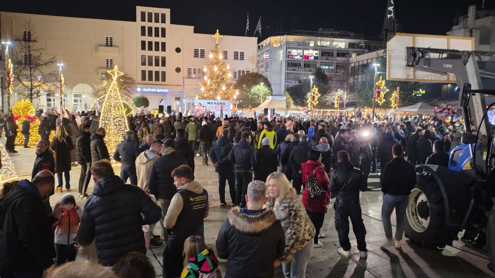 Στην κεντρική πλατεία ανέβηκε συμβολικά ένας μικρός αριθμός τρακτέρ ενώ φορείς, σύλλογοι και συμπολίτες έδωσαν δυναμικό παρών.
