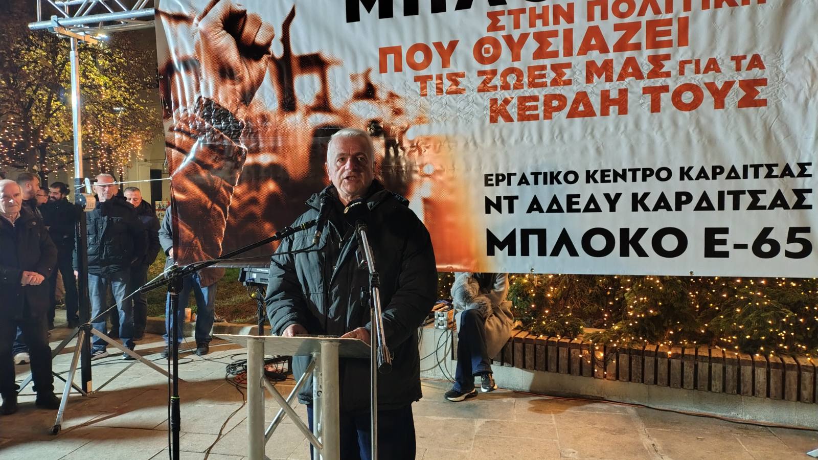 Ο τσαμπουκάς της κυβέρνησης έσπασε στις 30 Νοεμβρίου όταν ανεβήκαμε στον Ε65, κόντρα σε όλους που δεν το περίμεναν. Καταφέραμε αυτό που δεν ήθελε η κυβέρνηση . Να βγούμε στο δρόμο για να διεκδικήσουμε λύσεις. Το καταφέραμε, με χημικά, ξύλο και τραυματισμένους αγρότες, με συλληφθέντες αγρότες. Αλλά συσπειρώσαμε και την κοινωνία δίπλα μας. Είναι ένας αγώνας αξιοπρέπειας. Παίρνουμε δύναμη από τον κόσμο. Αλλά συγχρόνως στέλνουμε και ένα μήνυμα στην κυβέρνηση. Η προσπάθειά της να μας διασπάσει στην κοινωνία δεν πέρασε. Και παίρνει ένα μήνυμα από την Καρδίτσα ότι ο αγώνας θα συνεχιστεί μέχρι τέλους. Διεκδικούμε επιβίωση.