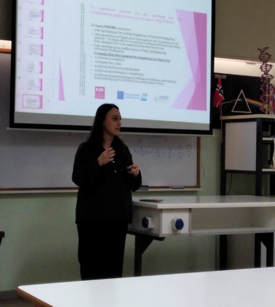 Με αφορμή τη Διεθνή Ημέρα για την εξάλειψη της βίας κατά των γυναικών, η οποία έχει οριστεί για την 25η Νοεμβρίου κάθε έτους, πραγματοποιήθηκε την Τρίτη 9 Δεκεμβρίου ομιλία σε δύο τμήματα (Β3 και Γ5) του σχολείου μας από δύο εκπροσώπους του Κέντρου Γυναικών Καρδίτσας (Κ.Γ.Κ.).