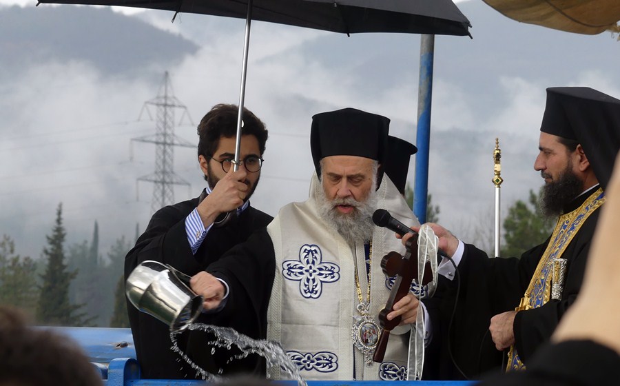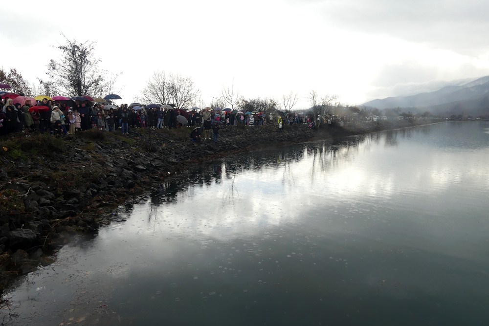 Παρότι οι καιρικές συνθήκες δεν ήταν ευνοϊκές καθώς υπήρχε σε όλη τη διάρκεια της τελετής ελαφρύ ψιλόβροχο, πλήθος κόσμου παραυρέθηκε στην καθιερωμένη τελετή αγιασμού των υδάτων με την κατάδυση του Τιμίου Σταυρού, στην αναρρυθμιστική λίμνη.