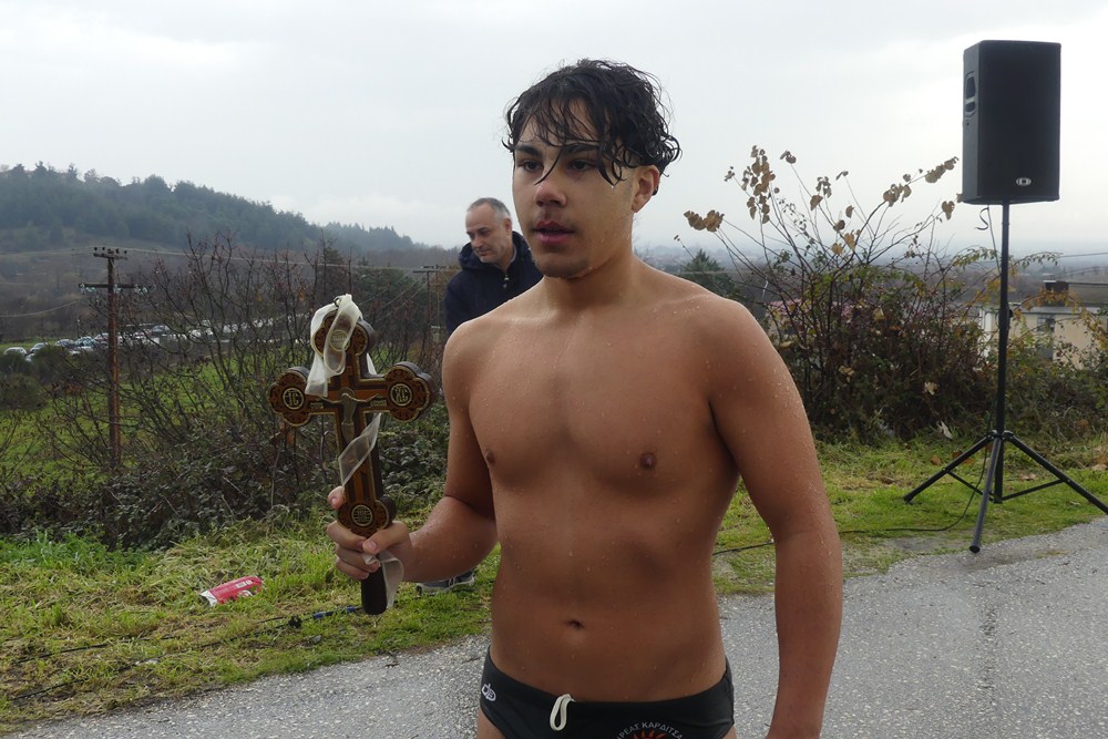 Το Σταυρό έπιασε ο 14χρονος μαθητής του 3ου Γυμνασίου Καρδίτσας, Νάσος (Θανάσης) Κατσιάβας, ο οποίος βούτηξε στα νερά της λίμνης μαζί με ακόμη εννέα τολμηρούς κολυμβητές. Τη στιγμή που ο Σεβασμιότατος έριξε για τρίτη φορά τον Σταυρό, ψάλλοντας το «Εν Ιορδάνη βαπτιζομένου σου Κύριε…», ο νεαρός κατάφερε να τον ανασύρει πρώτος και στη συνέχεια τον παρέδωσε στον Σεβασμιότατο, λαμβάνοντας ως ευλογία έναν σταυρό, μια εικόνα και τις πατρικές του ευχές.