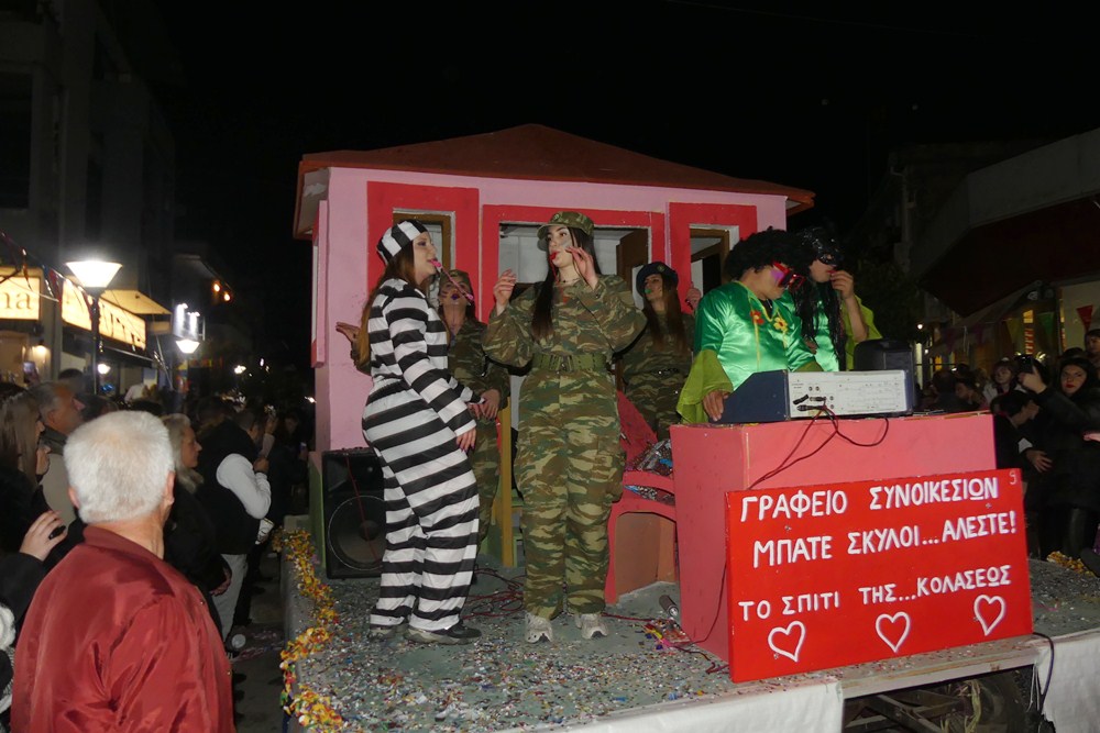 Τα άρματα κέρδισαν τις εντυπώσεις, ενώ οι ομάδες των πεζοπόρων τμημάτων παρέσυραν τους θεατές στους ρυθμούς της αποκριάς.