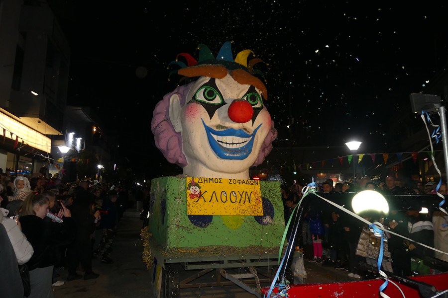 Με μια εντυπωσιακή παρέλαση με σάτιρα, παράδοση και εκατοντάδες καρναβαλιστές κορυφώθηκαν οι εκδηλώσεις για το Καρναβάλι των Σοφάδων, επιβεβαιώνοντας τη φήμη του και την ιστορία των 43 χρόνων του.