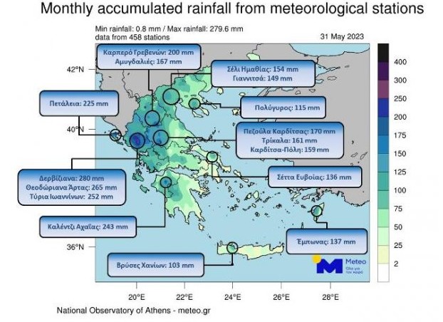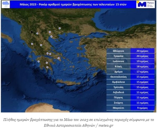 Μετά από έναν φτωχό υετικά χειμώνα και μια σχετικά άνυδρη άνοιξη για το μεγαλύτερο μέρος της χώρας (με εξαίρεση τα δυτικά), ο Μάιος του 2023 παρουσίασε ένα εξαιρετικά βροχερό πρόσωπο.
