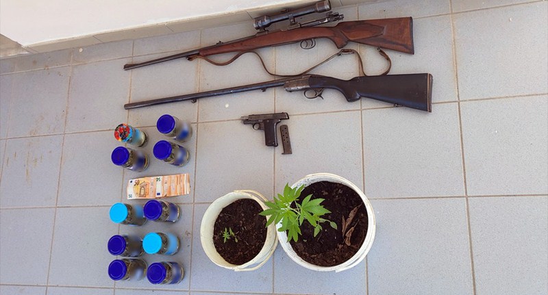 Κατασχέθηκαν 171 γραμμάρια κάνναβης, δυο καλλιεργούμενα δενδρύλλια κάνναβης, ένα πιστόλι, δύο πυροβόλα όπλα