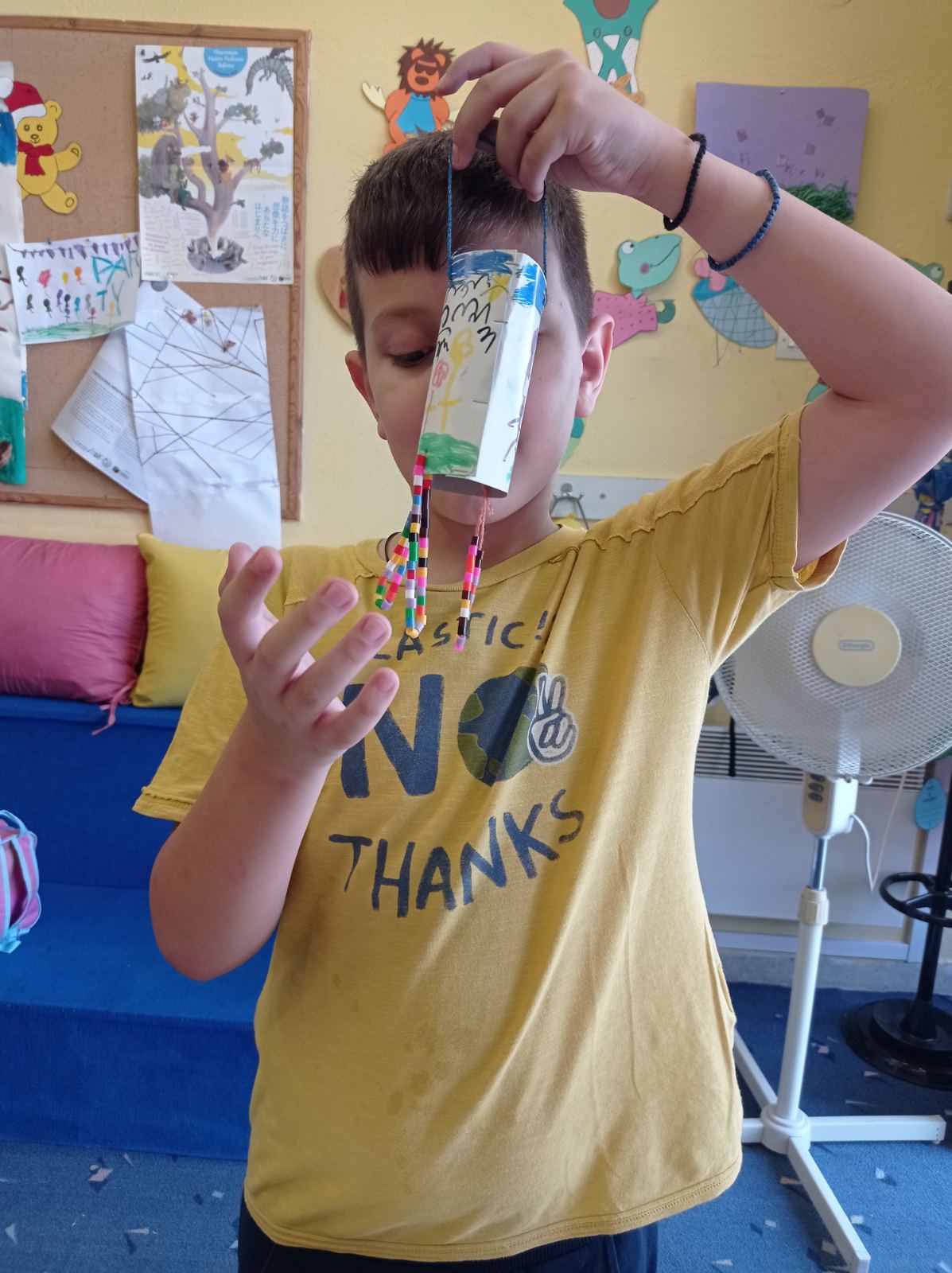Μπορούμε να δούμε τον άνεμο; Μπορούμε να τον νιώσουμε; Μέσα από όλα τα αποσπάσματα των βιβλίων που διαβάσαμε τα παιδιά συνειδητοποίησαν την ύπαρξη του ανέμου, καθημερινά γύρω μας, είτε φυσάει, είτε όχι, πότε είναι αόρατος και πότε ορατός. Γνώρισαν τα είδη των ανέμων με τις αρχαίες ονομασίες τους και φτιάξαμε  όλοι μαζί σαΐτες και μελωδούς, με καθημερινά υλικά, όπως ρολά από χαρτί υγείας, χάντρες, μικρά κομμάτια από χαλασμένα παιχνίδια,  καπάκια πλαστικών μπουκαλιών και άλλα υλικά.