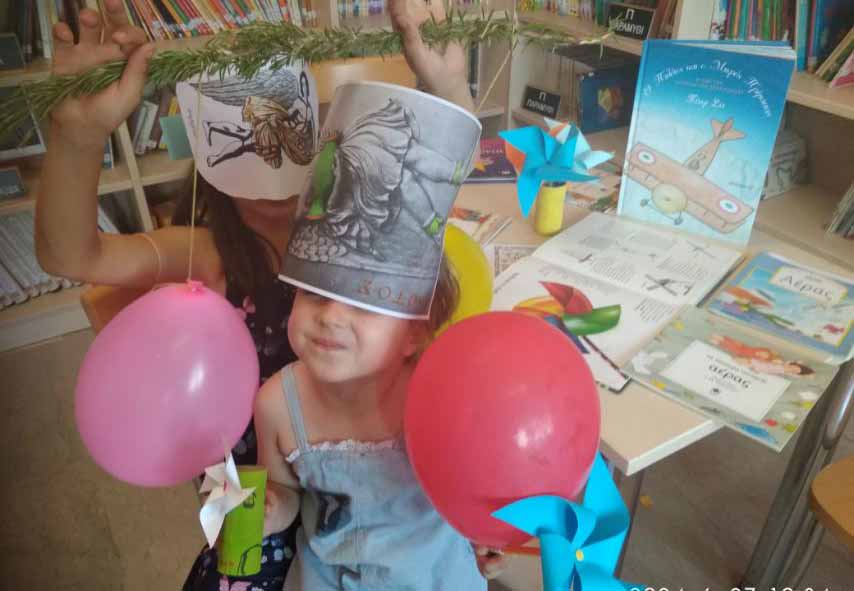 Ένας καλός άνεμος μας έφερε στην βιβλιοθήκη, «Το θαλασσινό τ' αέρι (απ' τη λίμνη Πλαστήρα) θα με πάει και θα με φέρει» που λέει κι η συγγραφέας Ελένη Χωρεάνθη στα «Τραγούδια της γης και τ' ουρανού», την ώρα που «ο αγέρας παίζει φλογέρα», «συντροφιά με τον άνεμο» της Γαλάτειας Γρηγοριάδου - Σουρέλη, των εκδόσεων Πατάκη, ενώ εμείς με τα παιδιά των παιδικών βιβλιοθηκών φτιάχνουμε ανεμόμυλους  παρέα με τον Ζέφυρο, το Νότο, τον Βορέα, τον Εύρο, τούς αρχαίους θεούς ανέμους.