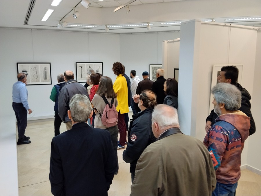 Μια ξενάγηση και μια ανοιχτή συνομιλία για τις σχέσεις Ζωγραφικής και Χαρακτικής υπήρξε το δέλεαρ για τη σύναξη αυτή. Η υπάλληλος της ΔΠΚ Μαρία Γιαννέλου σκιαγράφησε το χρονικό της μακρόχρονης συνεργασίας μεταξύ της ΔΠΚ και της Εταιρεία Εικαστικών Τεχνών Α. ΤΑΣΣΟΣ με την παρούσα έκθεση να αποτελεί την τρίτη της εκδήλωση. Ο κ. Μάνος Στεφανίδης, ιστορικός τέχνης και πρόεδρος της Καλλιτεχνικής Επιτροπής της ΔΠΚ φώτισε σημεία από την ιστορία της χαρακτικής, μίλησε για σημαντικούς εκπροσώπους της τέχνης αυτής στην Ελλάδα, ανέδειξε τη στενή συνάφεια αλλά και τα σημεία απόκλισης της ζωγραφικής και της χαρακτικής. Το μέλος της Καλλιτεχνικής Επιτροπής κ. Άκης Κοτρώτσιος και ο κ. Δημήτρης Βάλλας, ζωγράφοι και οι δύο, κατέθεσαν τις εμπειρίες τους από πειραματισμούς πάνω στην τέχνη της χαρακτικής. Ιδιαίτερο ενδιαφέρον είχε η παρουσία στην εκδήλωση των χαρακτριών κ. Χριστίνας Αγγέλου και κ. Μαρίας Γκαλιάτα που και οι δύο μυήθηκαν στη χαρακτική κατά την μαθητεία τους σε Σχολές Καλών Τεχνών. Αναφέρθηκαν με θέρμη στην μαγεία που εισπράττουν από την ενασχόληση με την τεχνολογία της χαρακτικής, αλλά και τις πρακτικές δυσκολίες που αντιμετωπίζουν ως ενεργές καλλιτέχνιδες. Στην Ελλάδα, υπάρχουν ελάχιστα οργανωμένα εργαστήρια χαρακτικής όπου οι ελεύθεροι καλλιτέχνες μπορούν να τυπώσουν έργα τους, γεγονός που λειτουργεί ανασταλτικά προς την ανάπτυξη της τέχνης αυτής. Ένας τόνος αισιοδοξίας προστέθηκε από την αυτοδίδακτη στη χαρακτική αλλά και ενθουσιώδη SOURTOUKA που την αξιοποιεί στην δουλεία της, όπως και ο JOLA που την έχει διδαχτεί και την υπηρετεί μέσω των γραφικών τεχνών. Απορίες και σκέψεις για την λειτουργία των πολλαπλών, τη σχέση της χαρακτικής με την φωτογραφία, αναφορά στο βιβλίο του Βάλτερ Μπένγιαμιν ‘’Το έργο τέχνης στην εποχή της τεχνικής αναπαραγωγιμότητάς του’’ και τον εκδημοκρατισμό της τέχνης μέσω της χαρακτικής. Μνήμες από την κοινή έκθεση με έργα των Α. ΤΑΣΣΟΥ και Δ. Γιολδάση από την Λαϊκή Βιβλιοθήκη ‘’Η ΑΘΗΝΑ’’, περίπου έξι δεκαετίες παλιότερα και η προσωπική γνωριμία του κ. Απόστολου Πίτσαβου με τον σημαντικό χαράκτη.